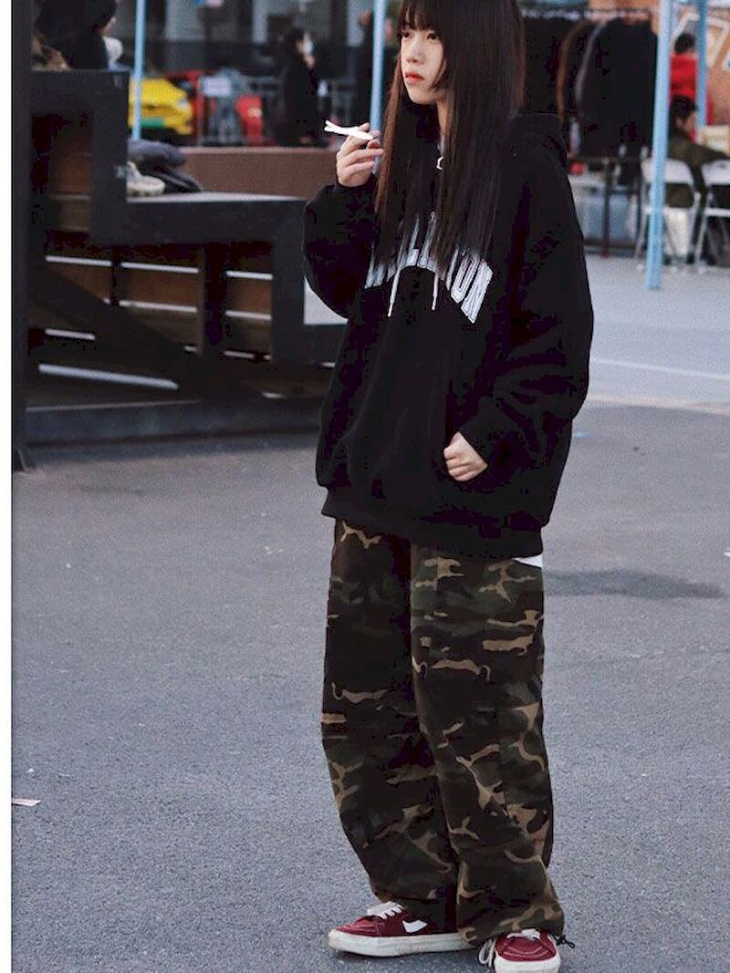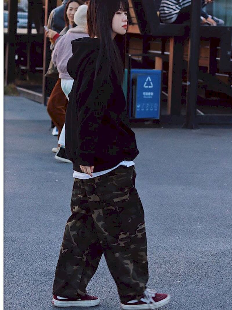 2022 Men Women Camouflage Overalls Techwear Hip-hop Straight Loose-fitting Drawstring Japan Cargo Trousers Jogging Sweatpants