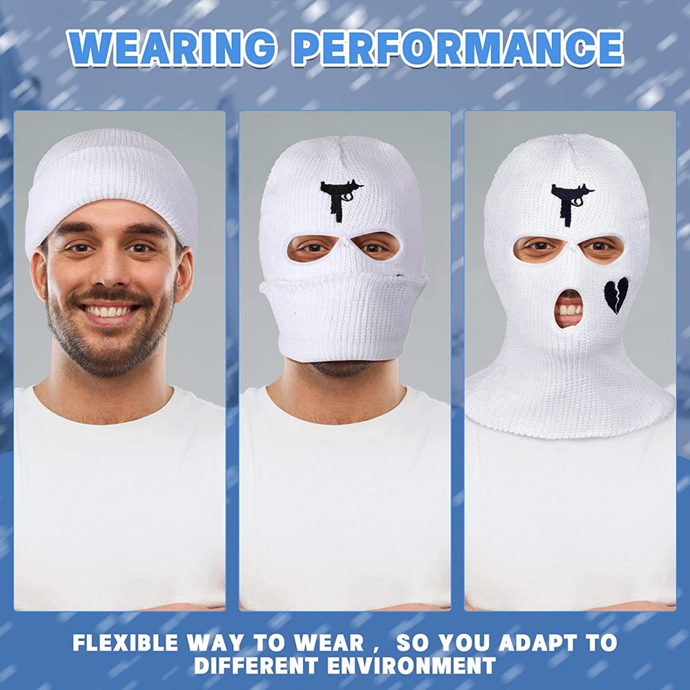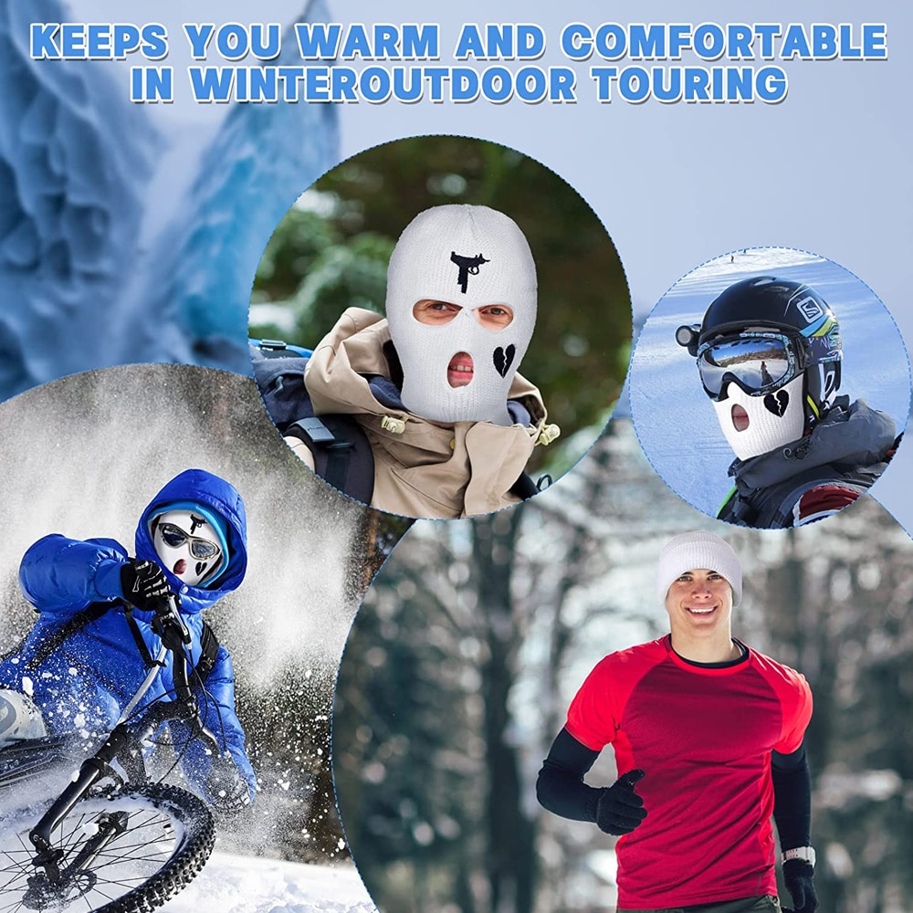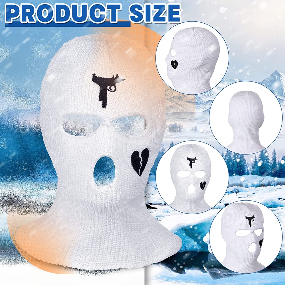 Cycling Knit Ski Mask 3 Hole Balaclava Knitted Full Face Cover "Heart" Embroidery Winter Windproof Neck Warmer Thermal