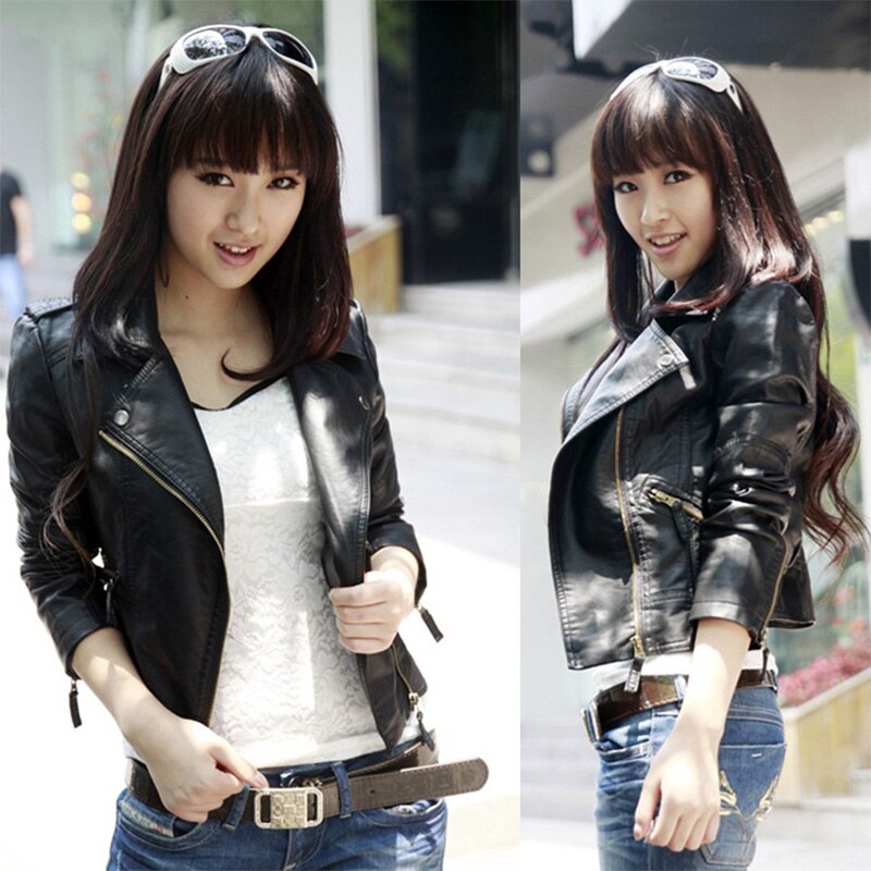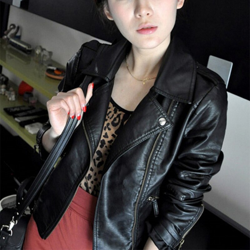 2023 Autumn Women Black Slim Cool Lady PU Leather Jackets Sweet Female Zipper Faux Femme Outwear Coat