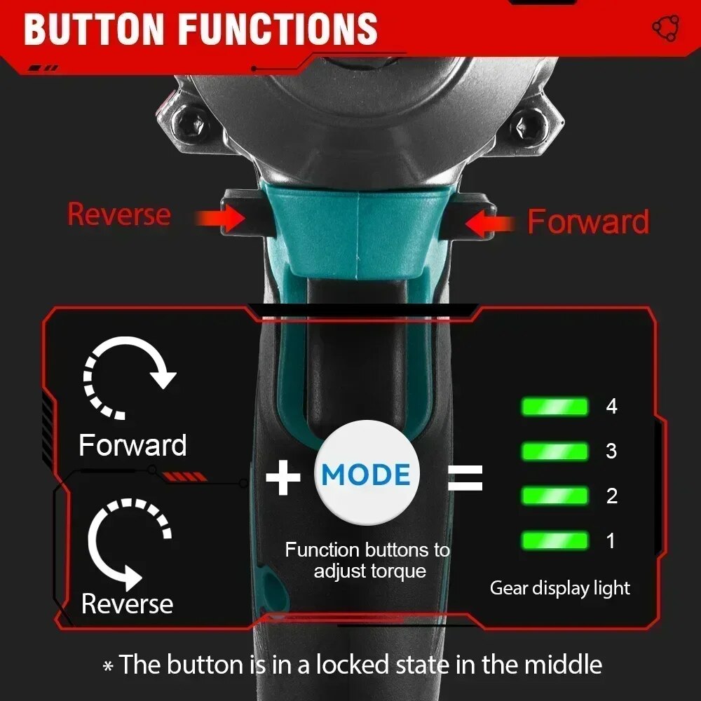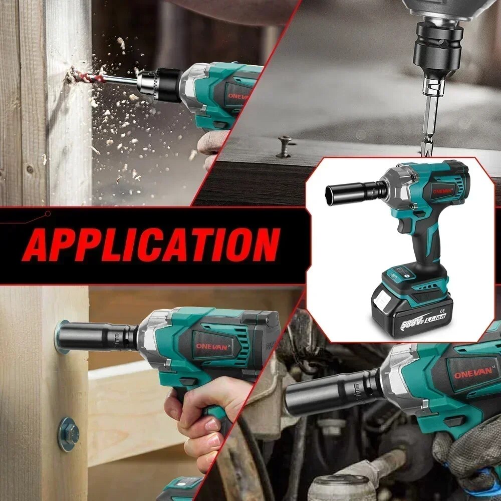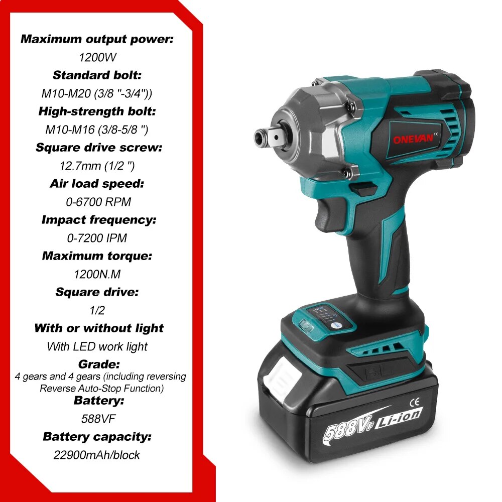 ONEVAN 1200 N.m Brushless Electric Impact Wrench 1/2'' Cordless 3 Funtion Electric Screwdriver Drill Tool For Makita 18V Battery
