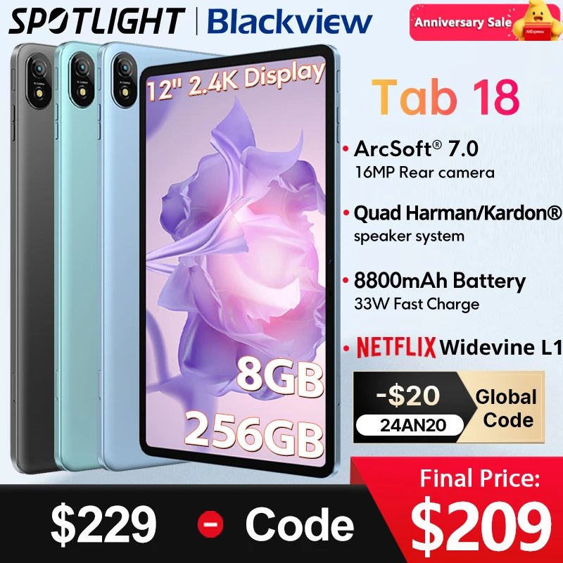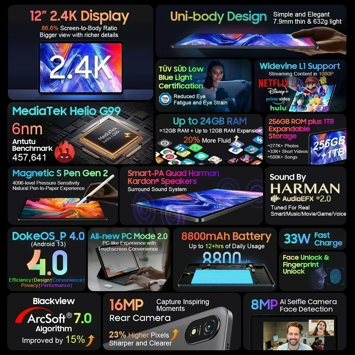 Blackview Tab 12 pro Tablet 10.1'' HD+ Display GPS 8GB RAM 128GB ROM 13MP Camera Dual 4G 6580mAh Battery Android 12 Tablets PC