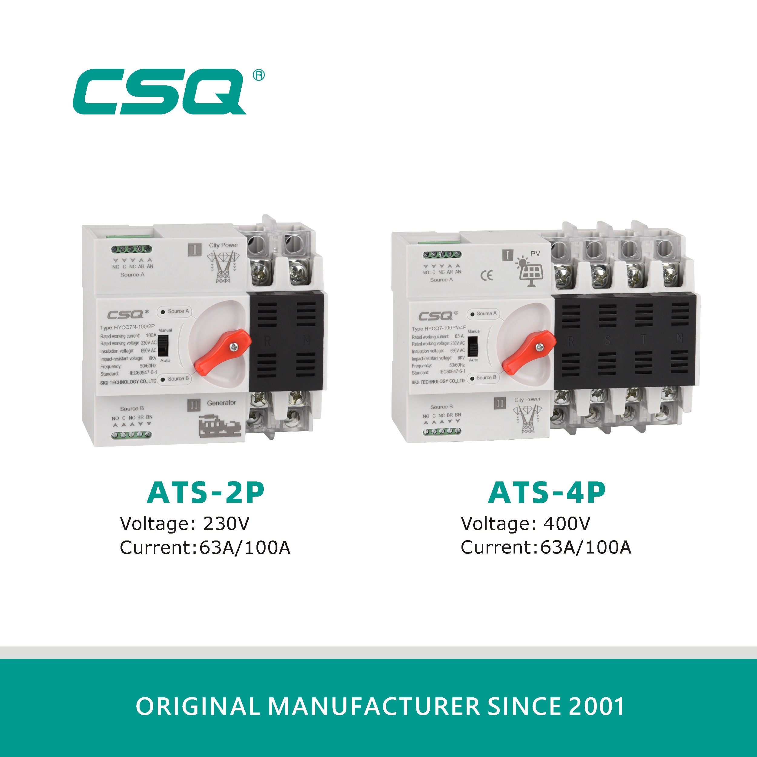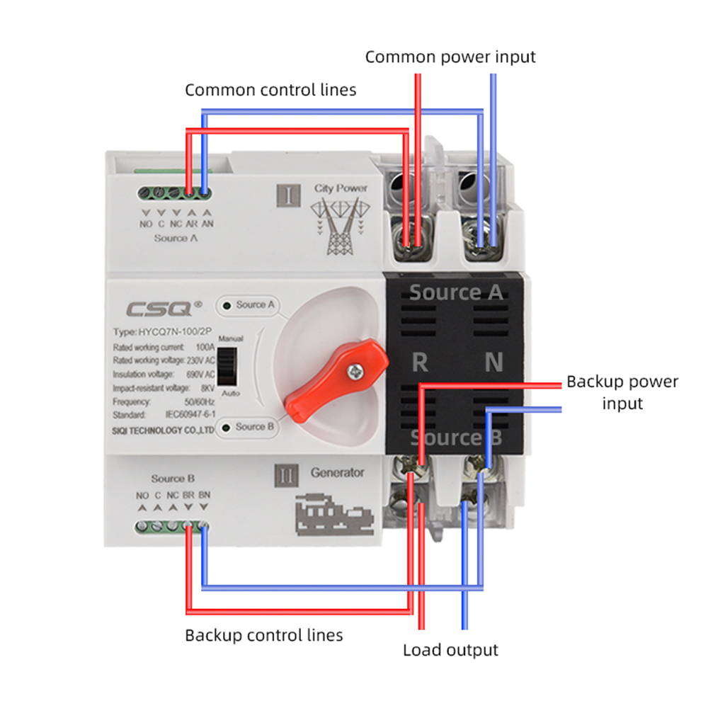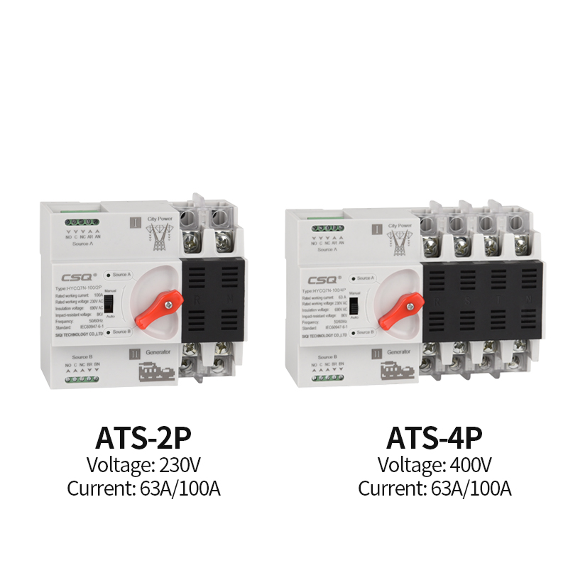 CSQ HYCQ7 ATS Automatic Transfer Switch Solar Pv For Inverter 2P 220V 4P System 100A Generator 63A 3 Single Phase Dual Power