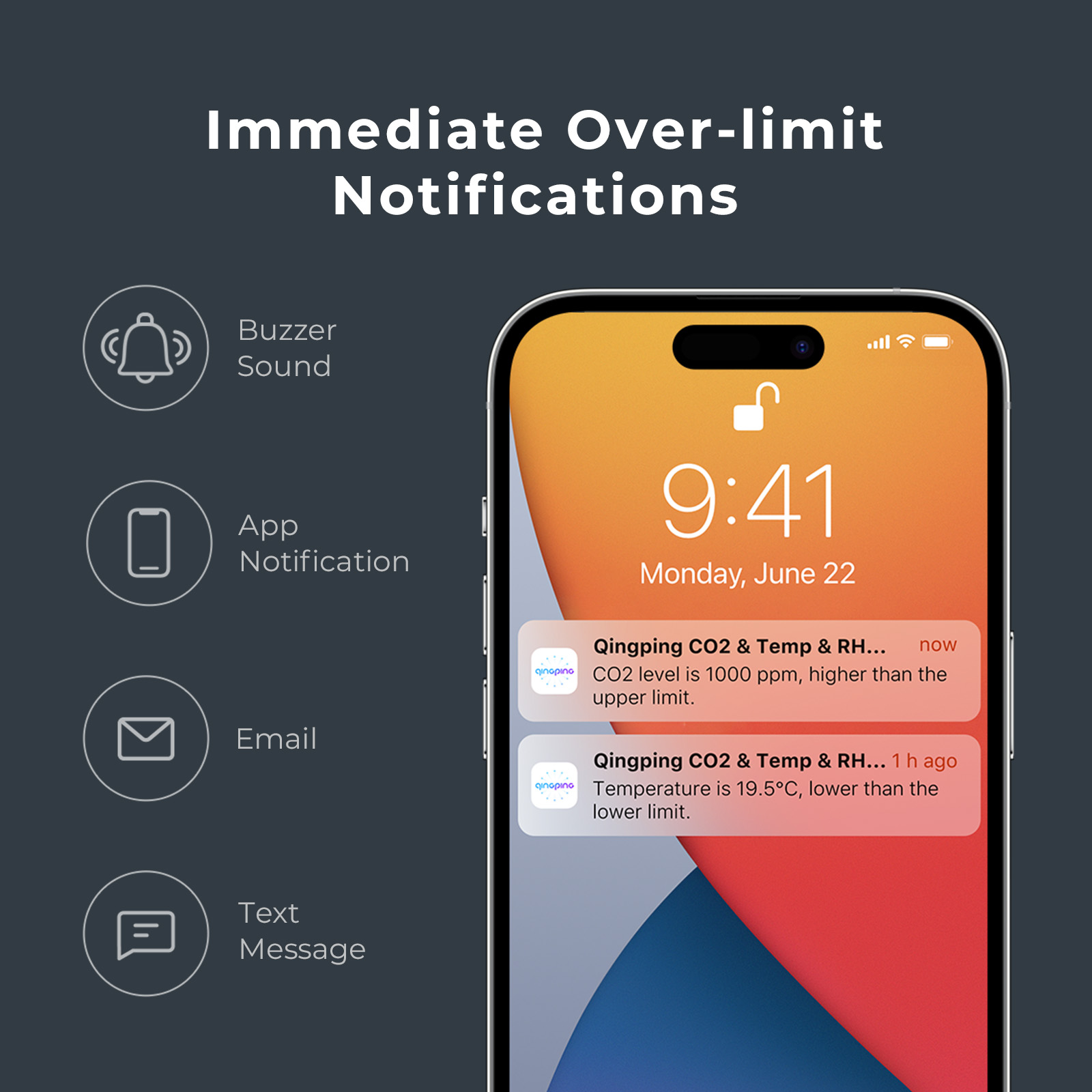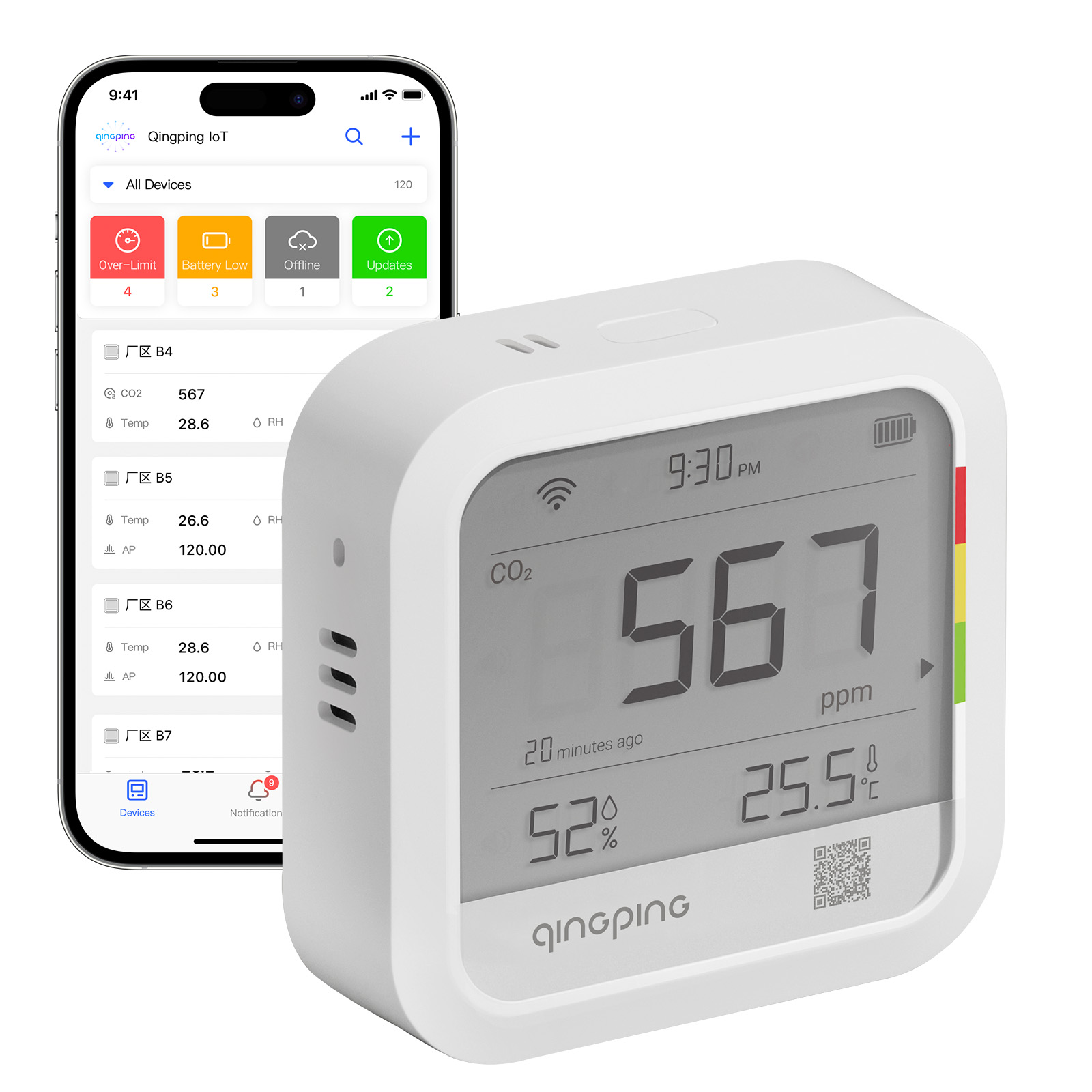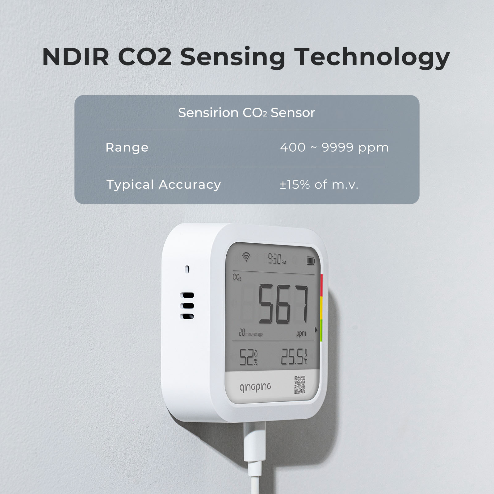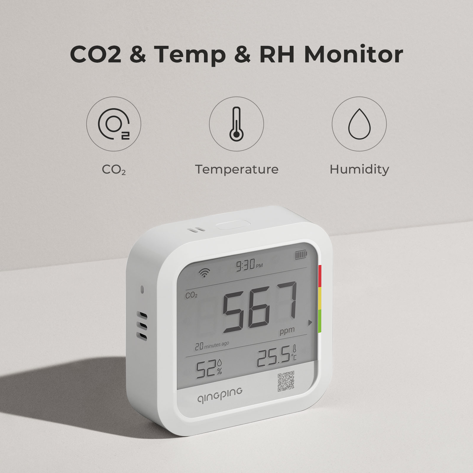 Qingping Thermometer Hygrometer CO2 Detetor, Remote Monitoring, Temperature & Humidity Monitor,Fast Alert Notification, Recharge