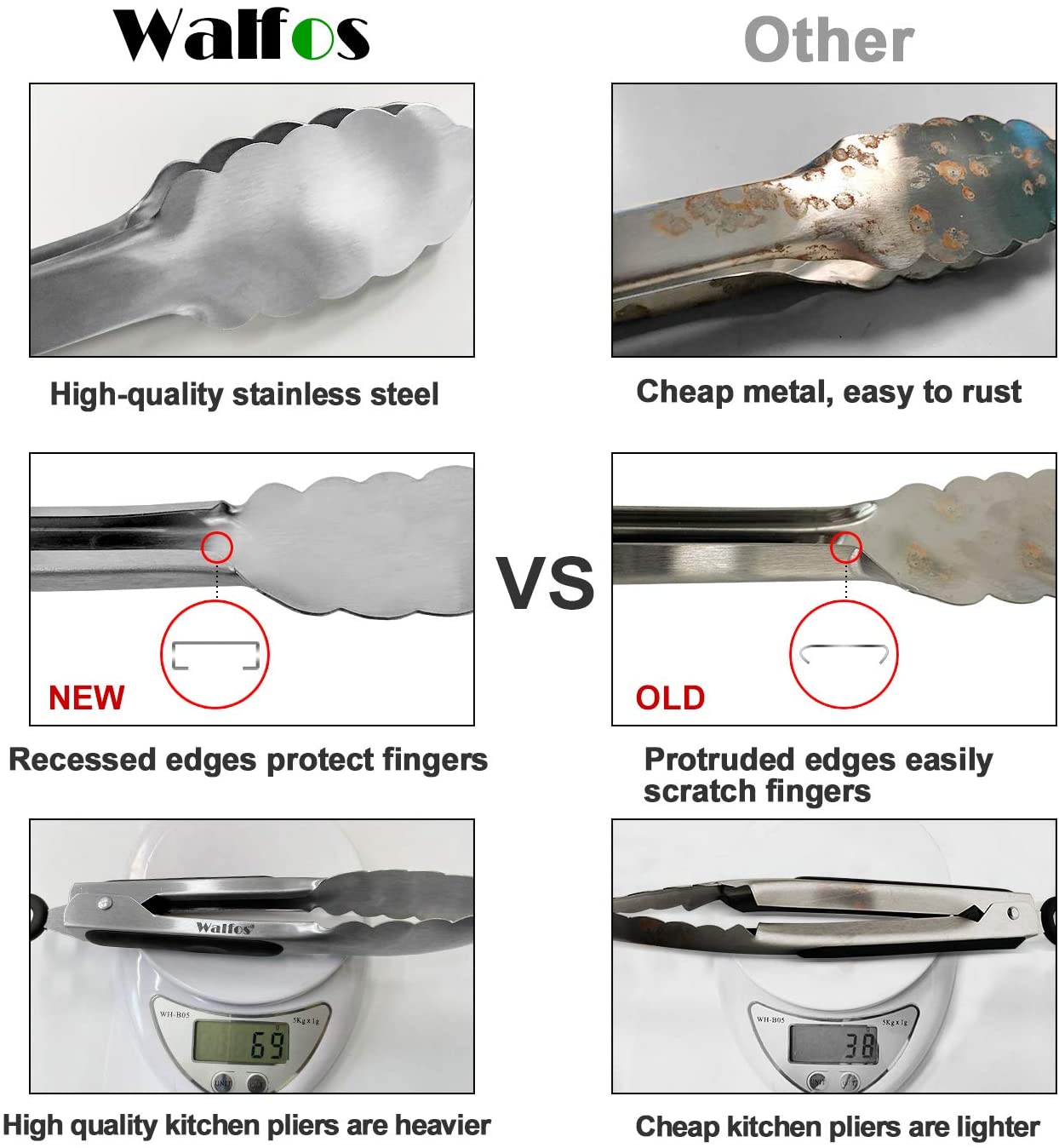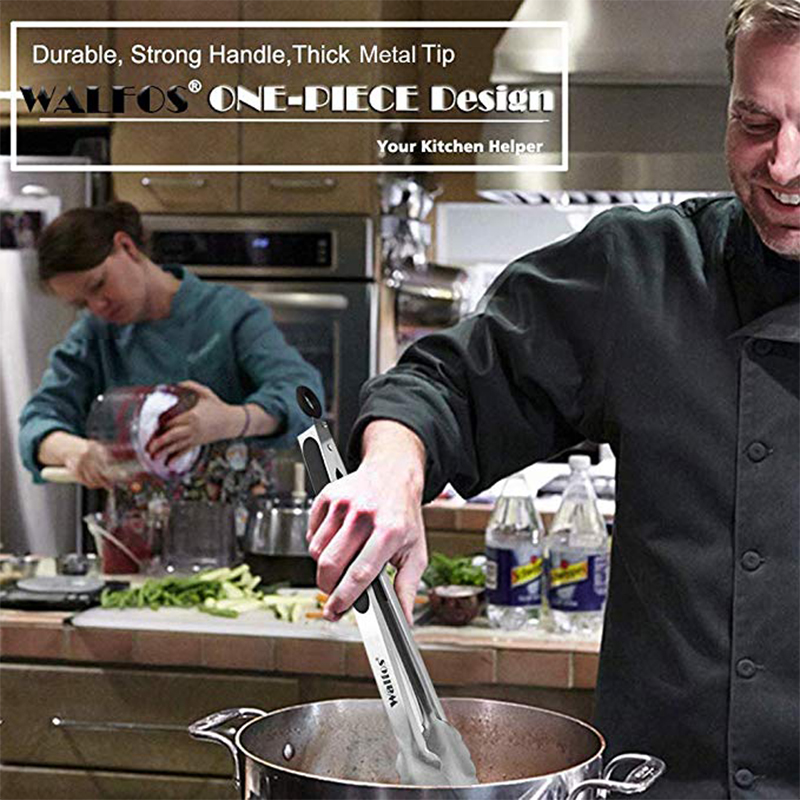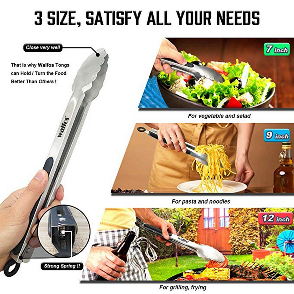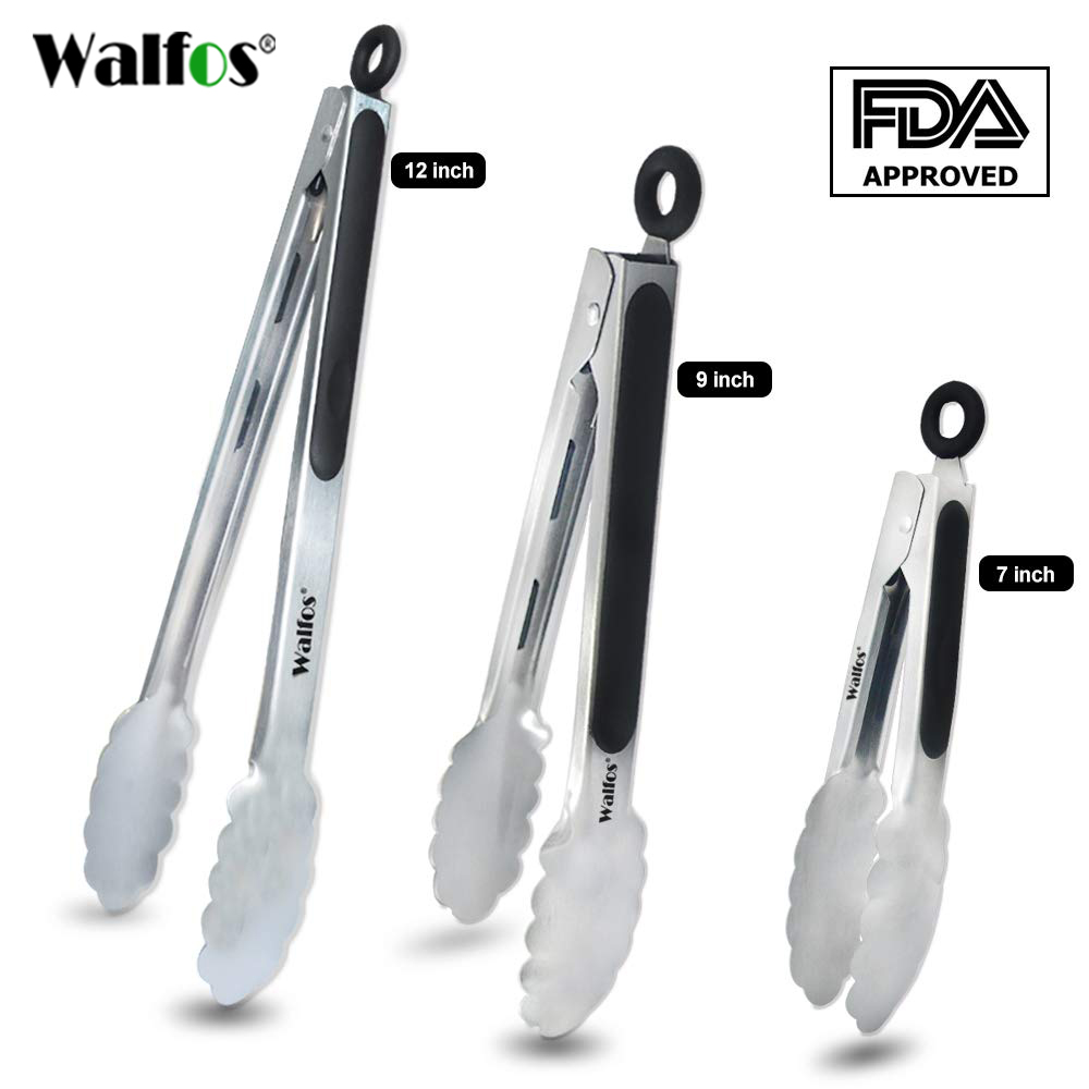 WALFOS BBQ Grilling Tong Salad Serving Food Tong Stainless Steel Metal Kitchen Tongs Barbecue Cooking Locking Tong Food BBQ Clip