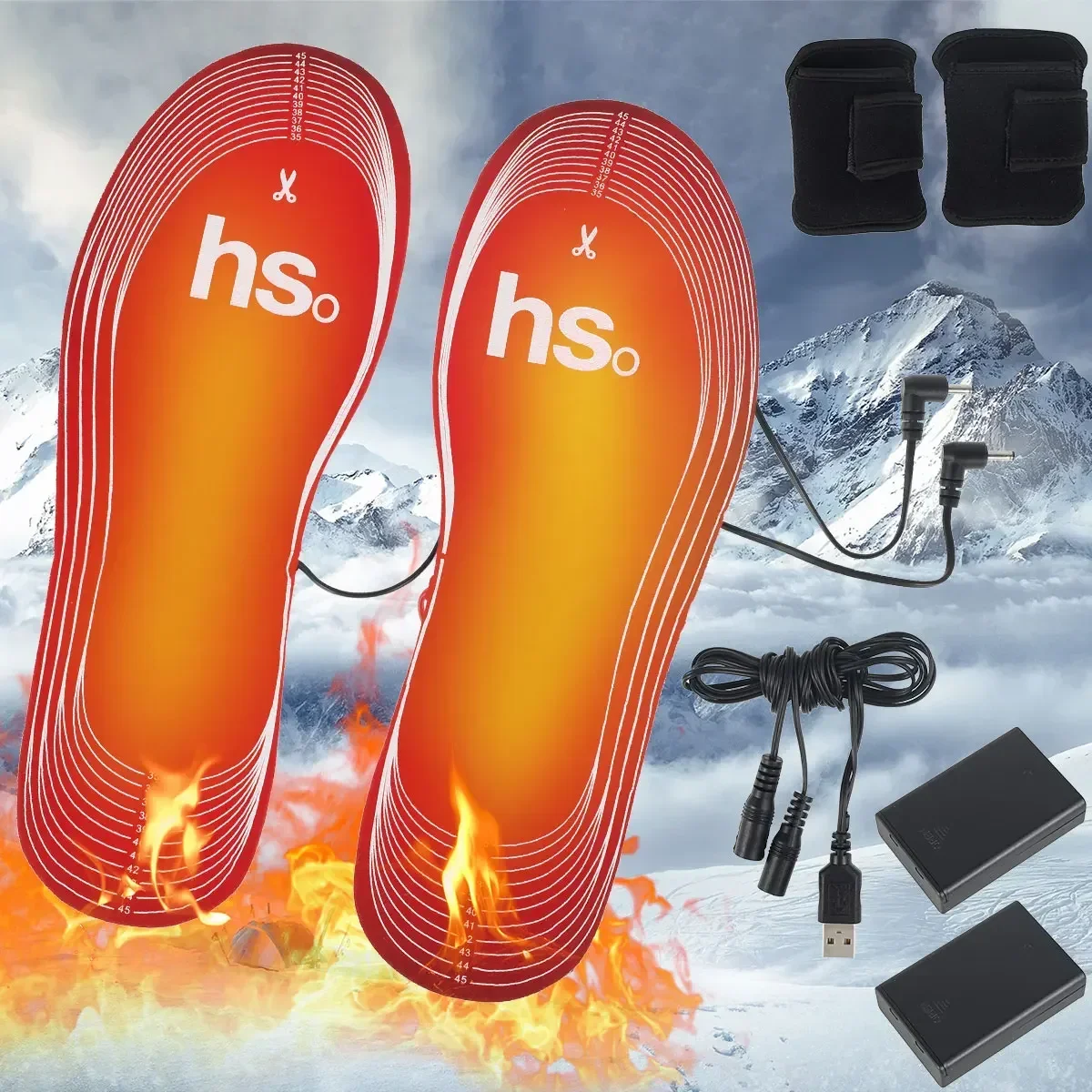 USB Heating Insole 3.7V or 4.5V with Battery Box Lithium Battery Heating Insole Winter Outdoor Sports Warming Thermal Insoles
