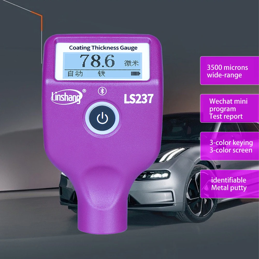Linshang LS237 Car Paint Thickness Gauge Checking Auto Coating Identify Ferrous Putty with Three Color and Rotatable Screen