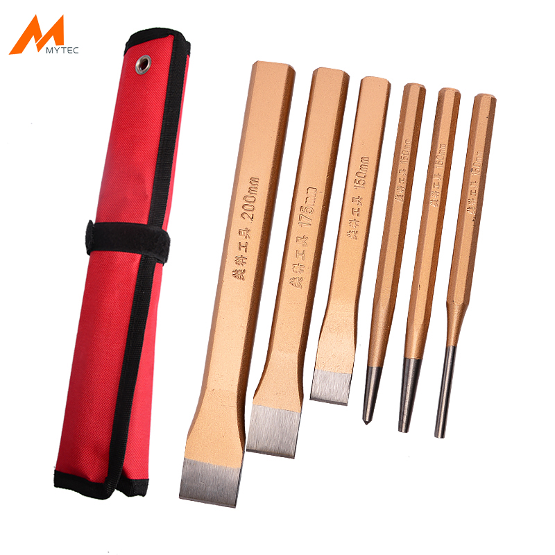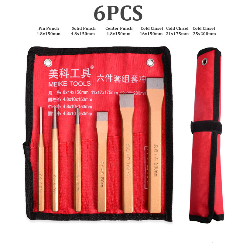 4PCS 6PCS Cold Chisel and Center Punch Set Solid Pin Punch Kit Masonry Plow Bit Stone Fitter Construction Carving Hand Tools