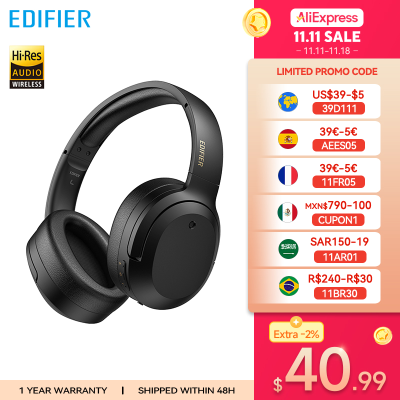 Edifier W820NB Plus Wireless Noise Cancelling Headphones 43dB ANC Hi-Res LDAC Codec 49hrs Playtime Over-Ear Bluetooth Headset