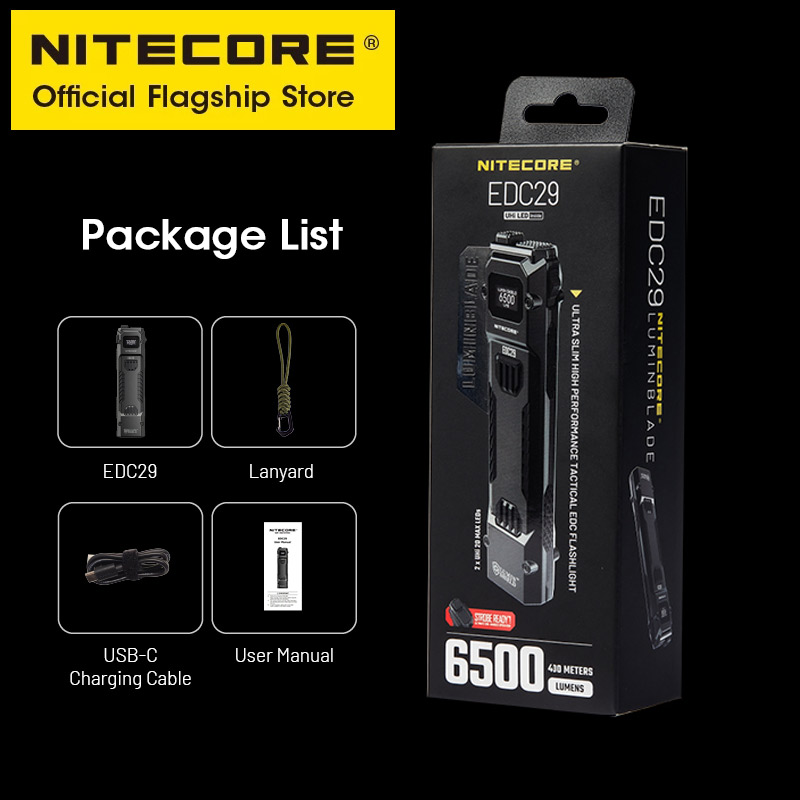 NITECORE EDC29 Utra Slim EDC Flashight 6500 Lumens USB-C Rechargeable Tactical Troch Light Built-in 2500mAh Li-ion Battery