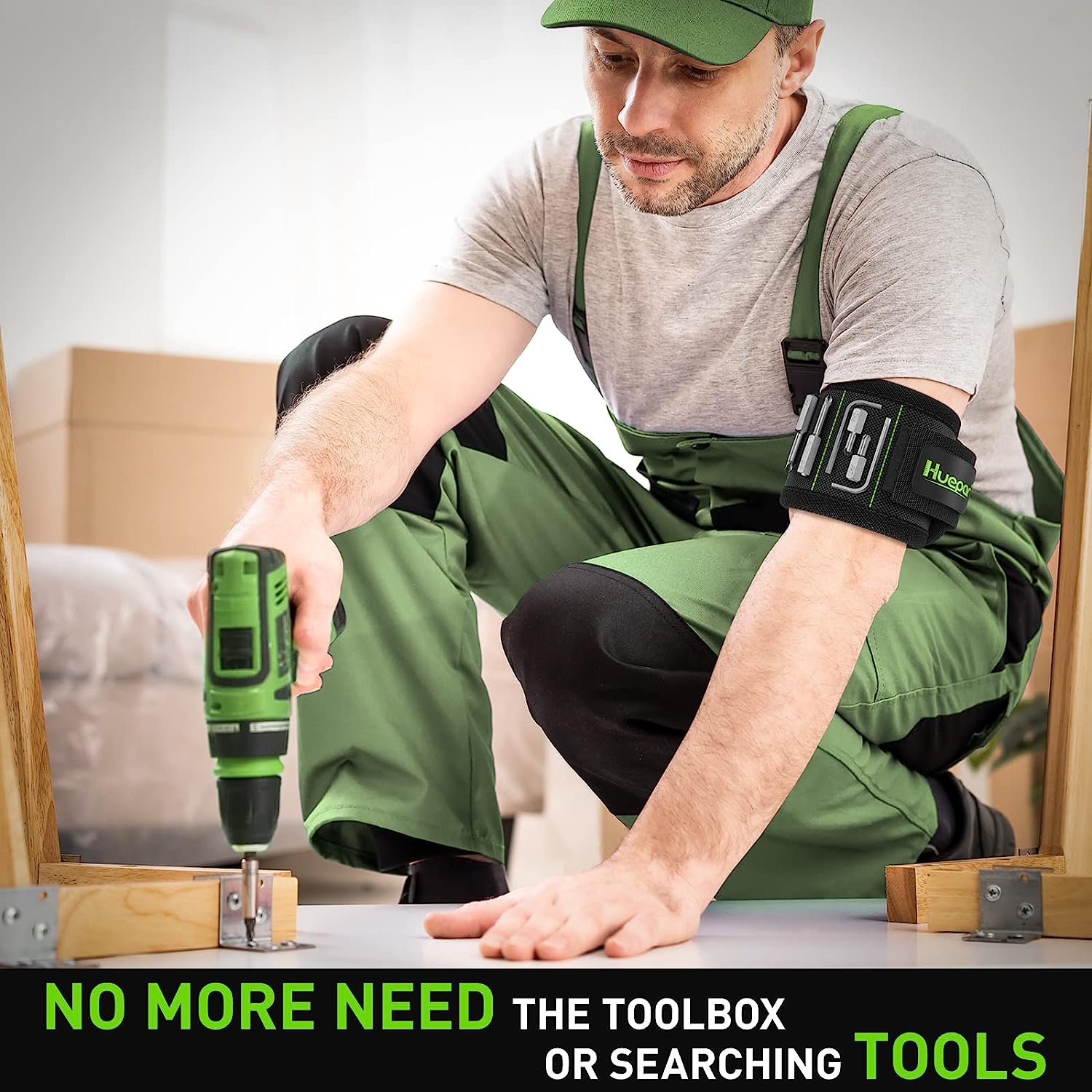 Huepar Magnetic Wristband with Strong Magnets For Holding Screws / Nails Drill Bits Cool Wrist Magnet Tools For Father & Husband