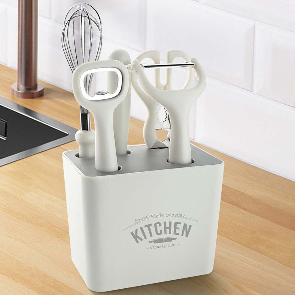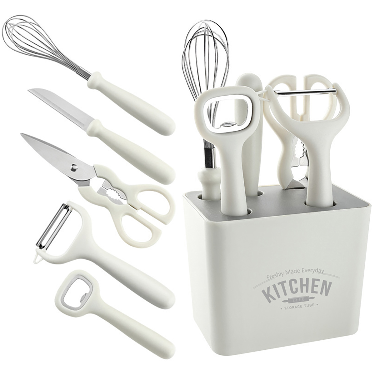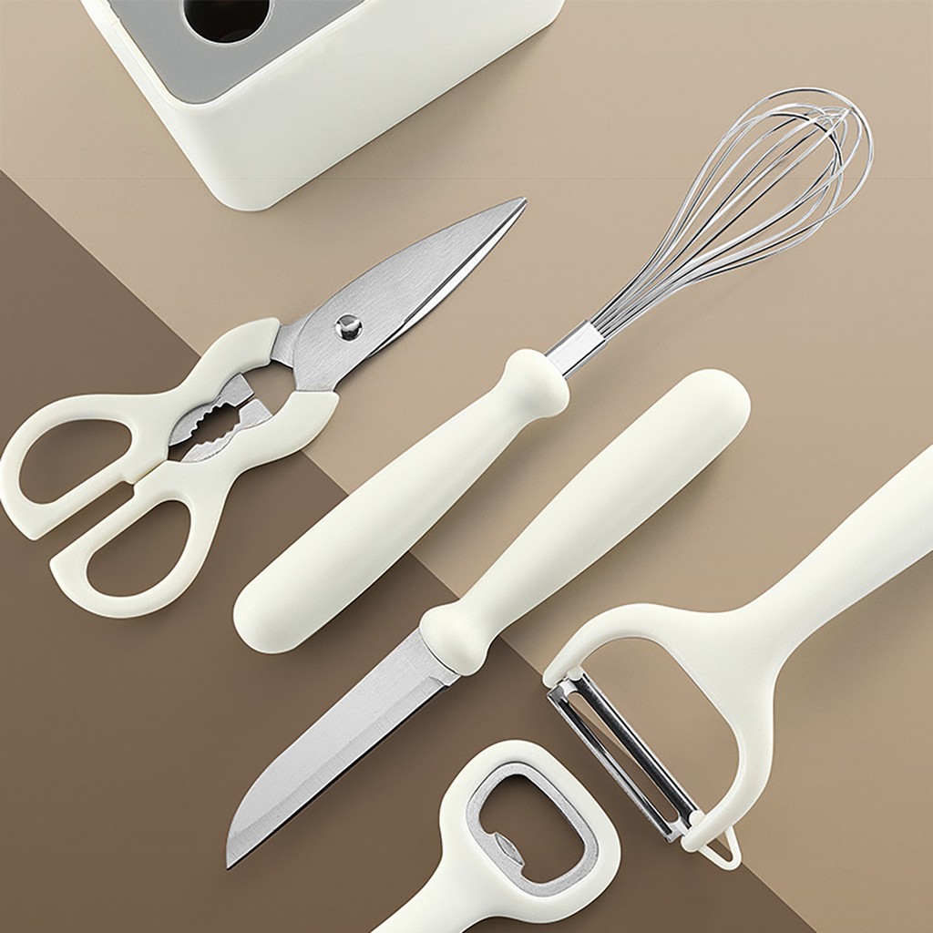 5/6Pcs Stainless Steel Kitchen Gadget Fruit Cutting Knife Set with Storage Seat Melon Shaver Scissors Fruit Knife Egg Beater Set