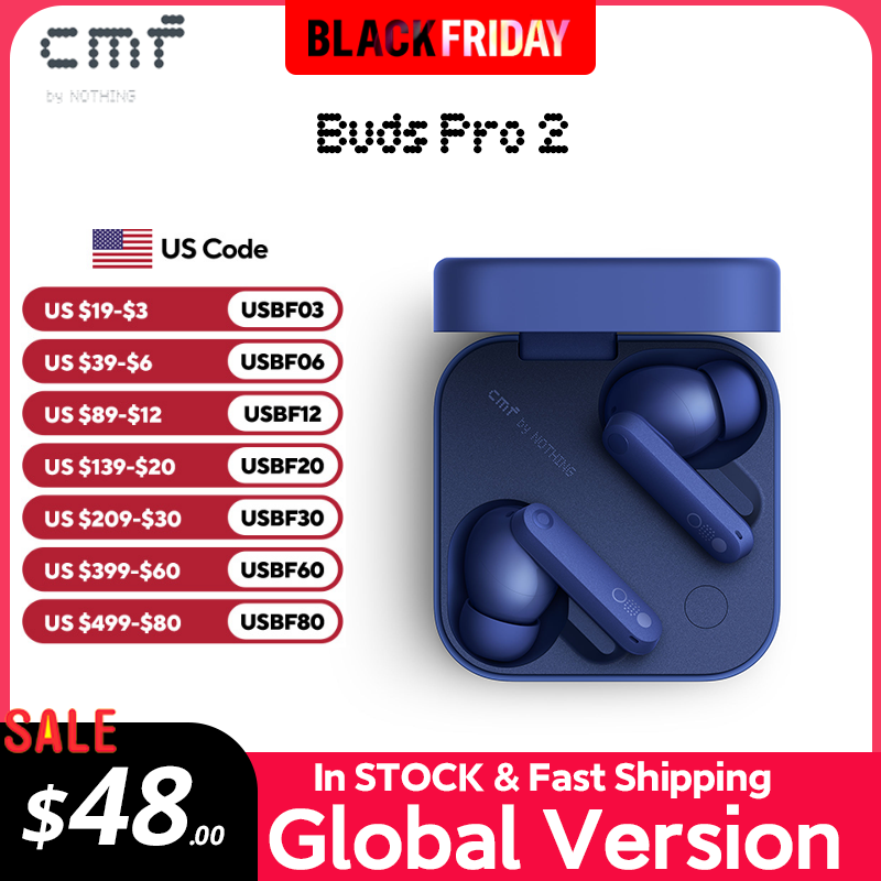 Global Verison CMF by Nothing Buds Pro 2 50dB Hybrid Active Noise Cancellation 6MICS IP55 Bluetooth 5.3