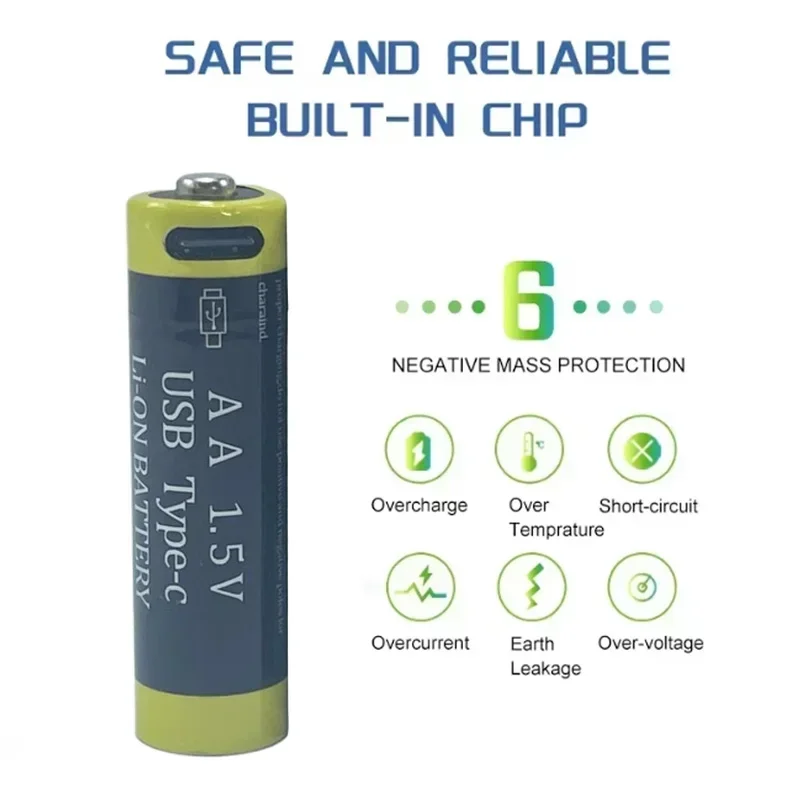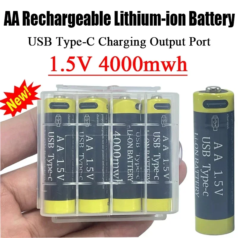 New AA 1.5V 4000mwh Rechargeable Li-ion Battery for Mouse Remote Control Small Fan Electric Toy Batteries USB Type-C Cable
