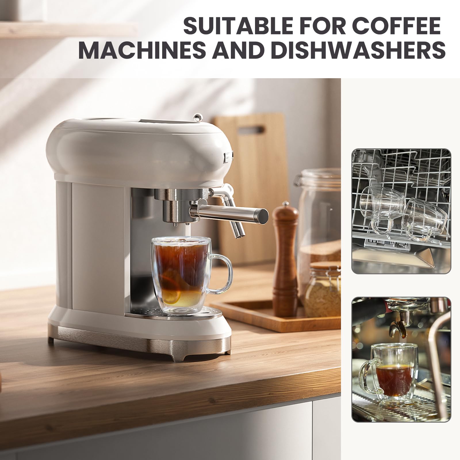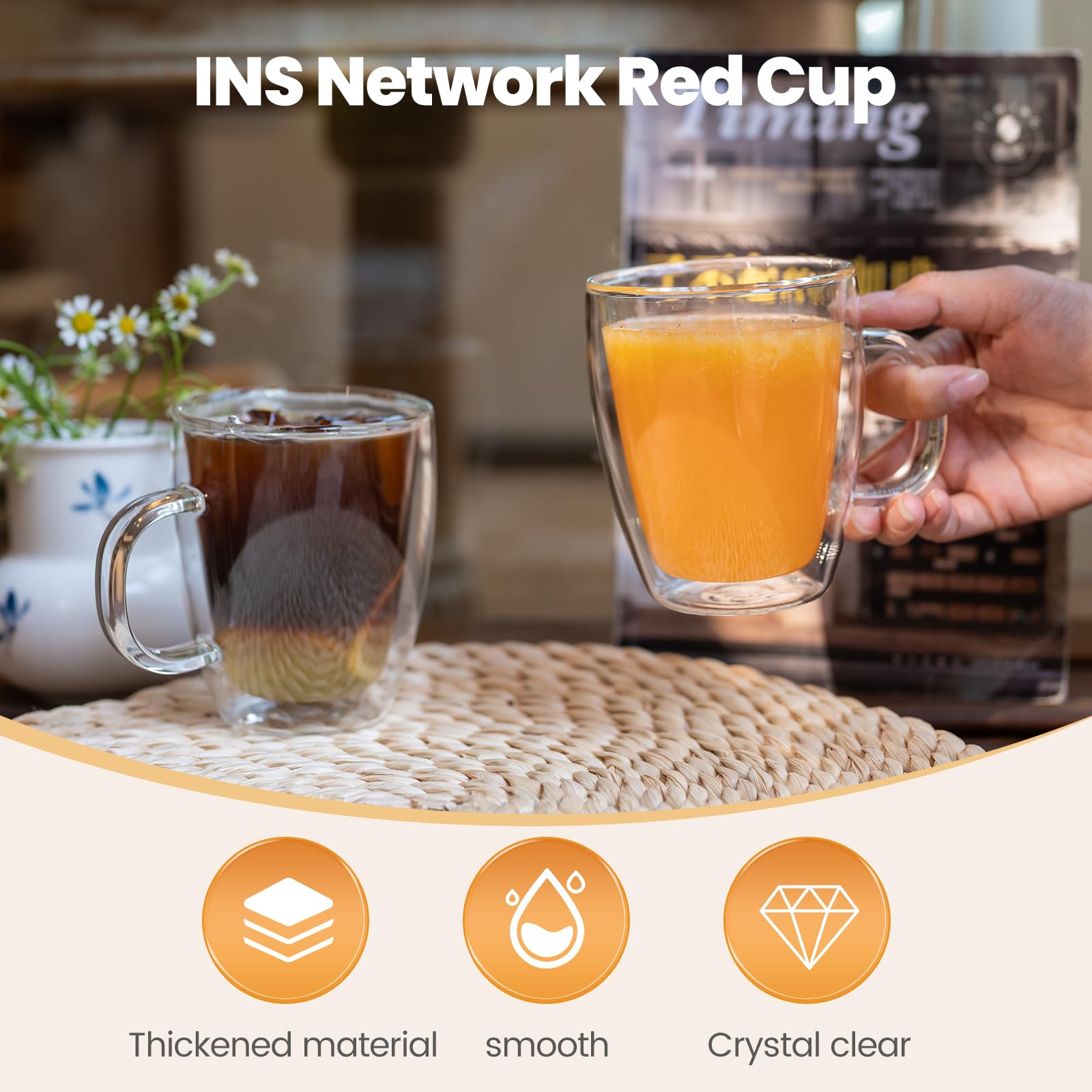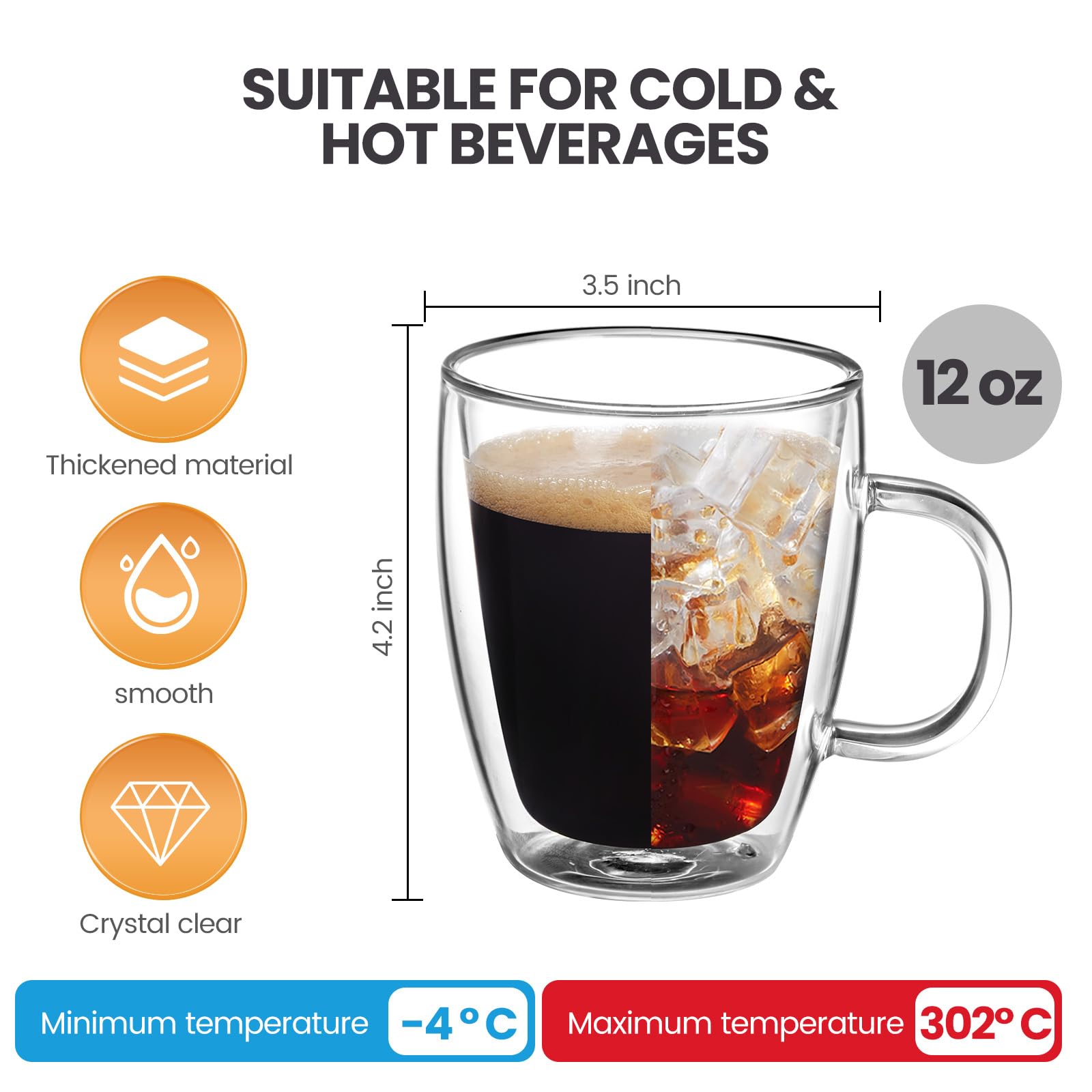 12 Oz Double Walled Glass Coffee Cups with Handle,Insulated Layer Mugs,Borosilicate Glass Cup,for Tea Latte Espresso Drinkware