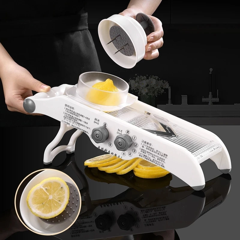 Multifunctional Lemon Slicer Vegetable Grater With Basket,V-blade Fruit Potato Chopper Carrot Cutter Slicer Kitchen Accessories