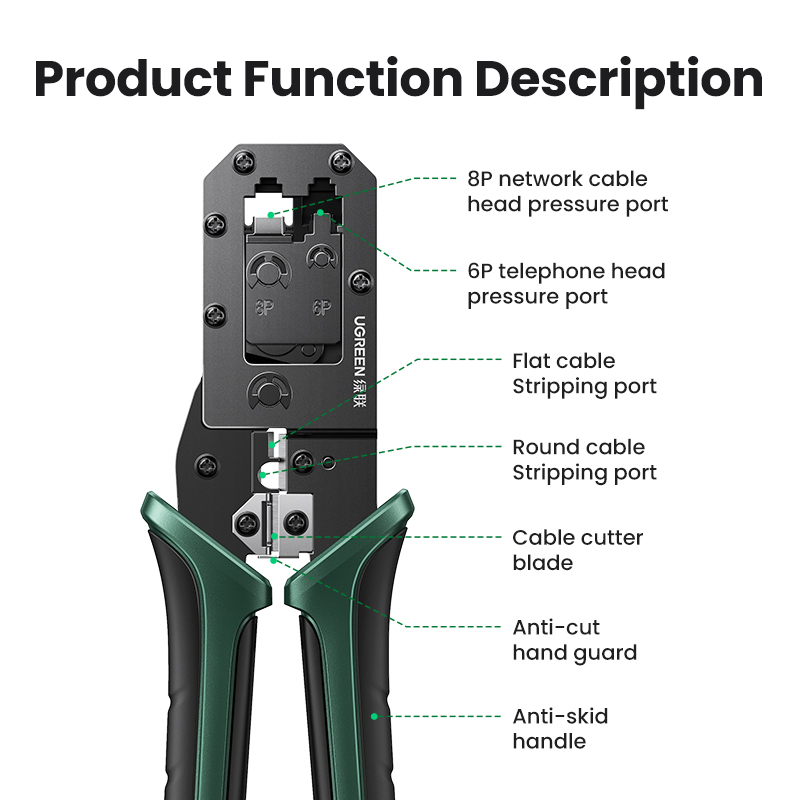 UGREEN RJ45 Crimper Tools RJ45 Crimping Pliers for CAT6/7 Ethernet Lan Cable Network Cutter Stripper Plier Multifuntion Tool