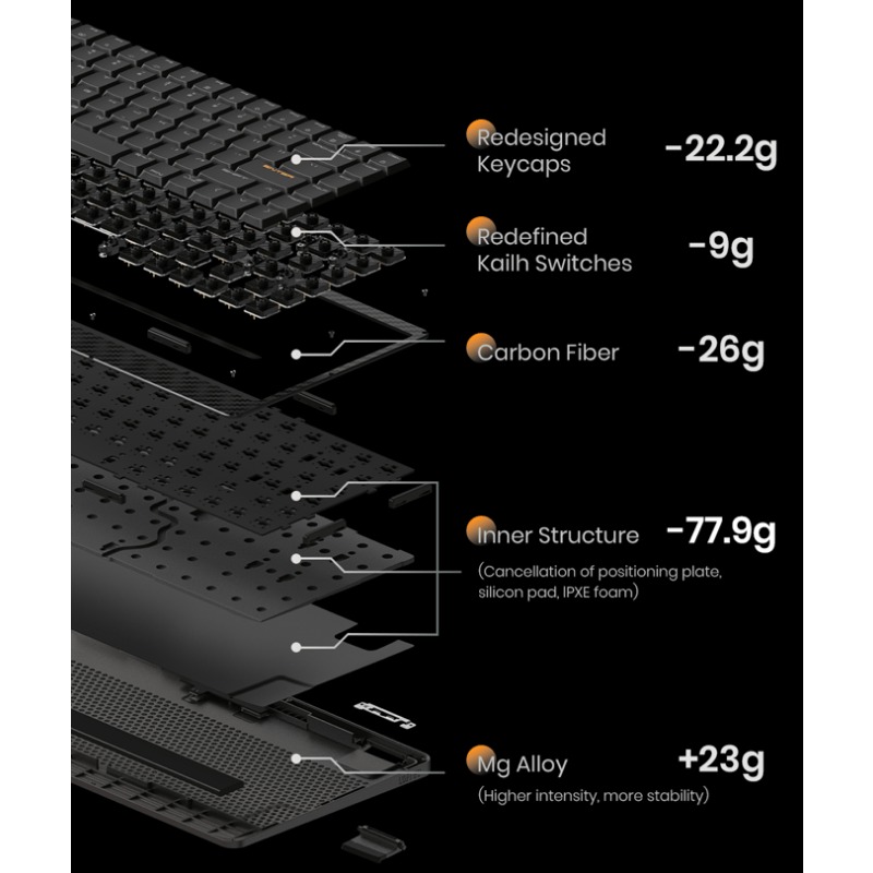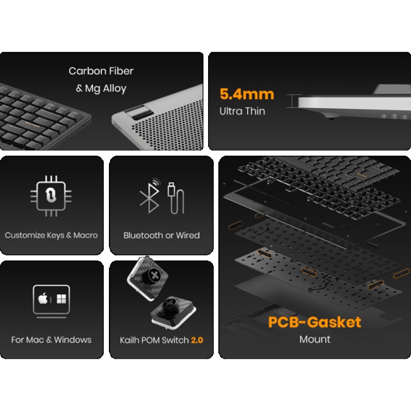 Lofree Edge 84 Keyboard Ultra Thin with Carbon Fiber & Mg Alloy |Kailh POM Switch 2.0 PCB-Gasket Mount Bluetooth or Wired