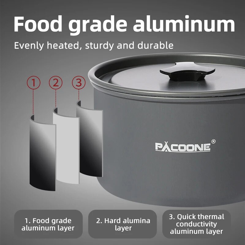 PACOONE Camping Cookware Set Portable Cookware Kit Outdoor Pot Cooking Water Kettle Pan Set Tableware Hiking Picnic Equipment