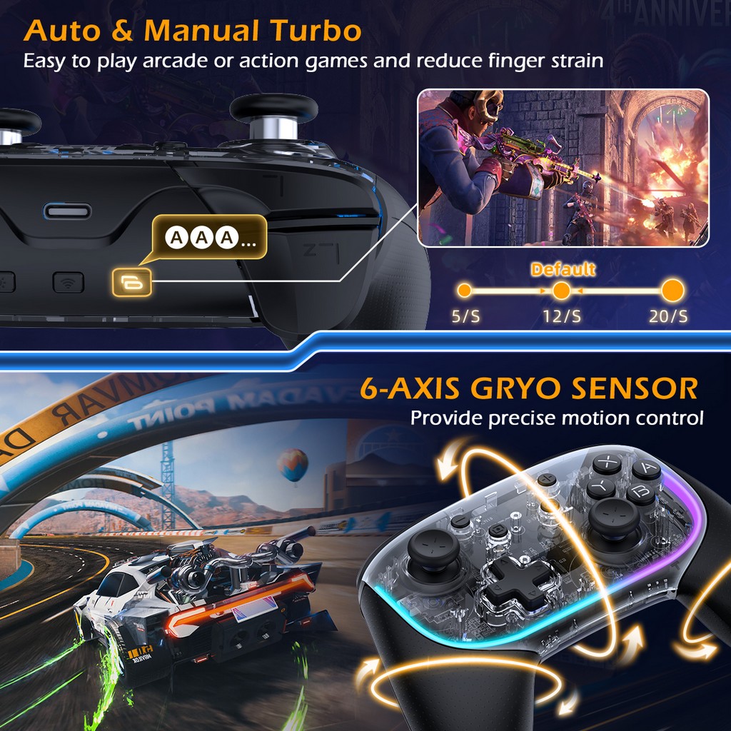 IINE Phantom controller with charging Dock / HD Rumble & Support Scan Amiibo & 2000-eveI ALPSJoysticks Precision & MACRO