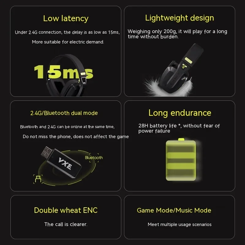 VGN VXE Siren V1 Wireless Headset Two Mode Bluetooth 5.3 2.4G FPS Gaming Headset Earphone Low Latency Light Weight Customize