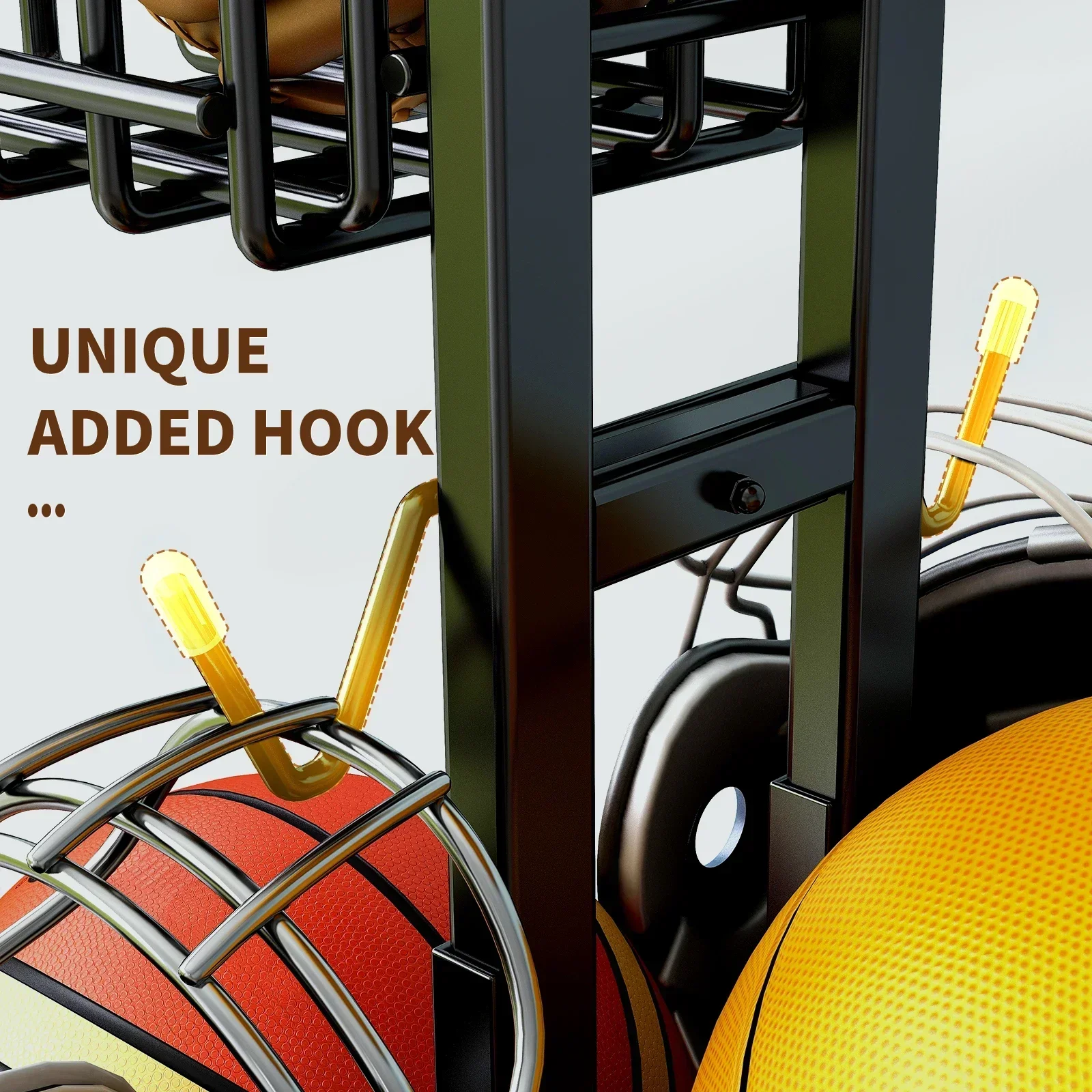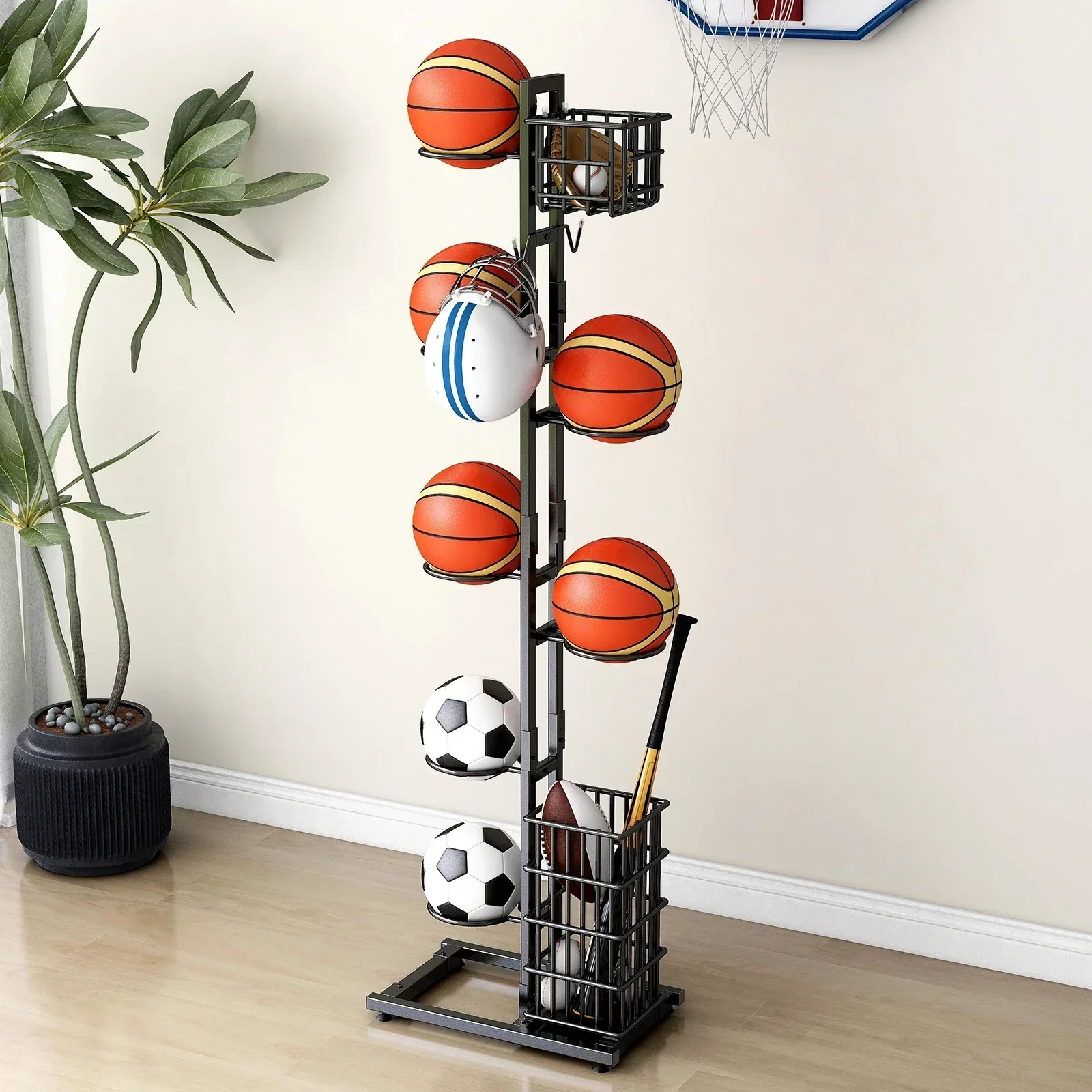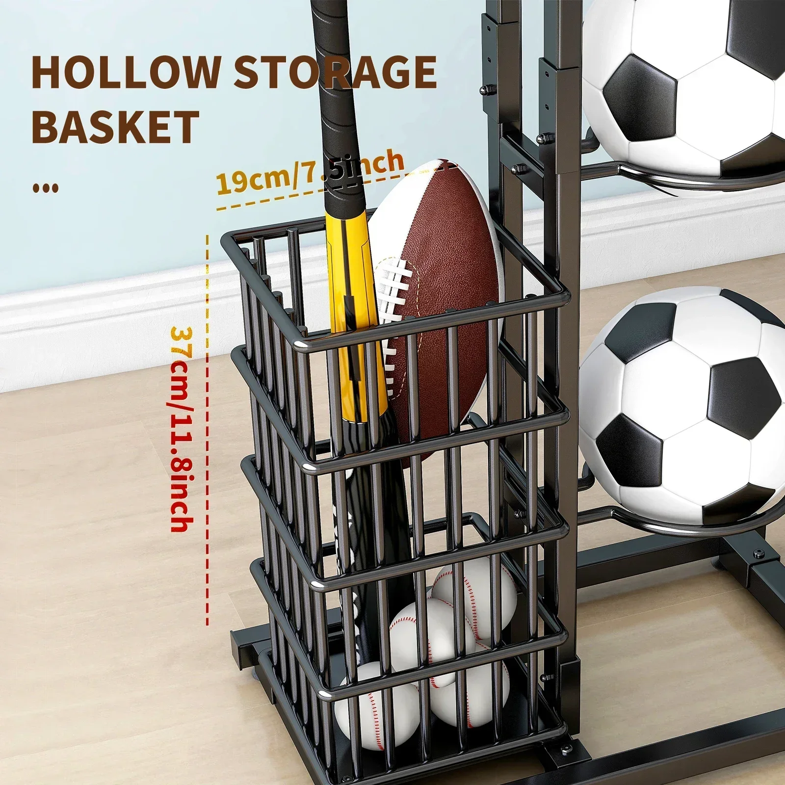 Sports equipment storage rack Outdoor indoor Basketball Football Volleyball Baseball storage holder Large capacity Black