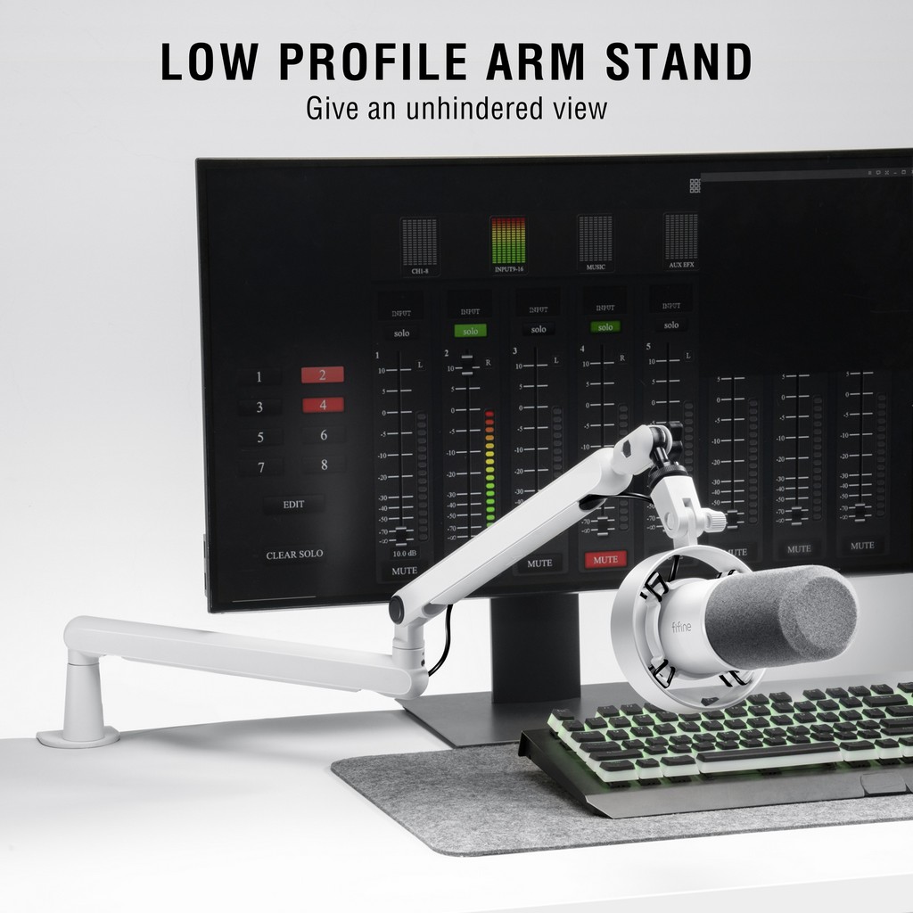 FIFINE Microphone Boom Arm, Adjustable Low Profile Mic Arm with Desk Mount Clamp,Cable Storage for Streaming Gaming-White BM88W
