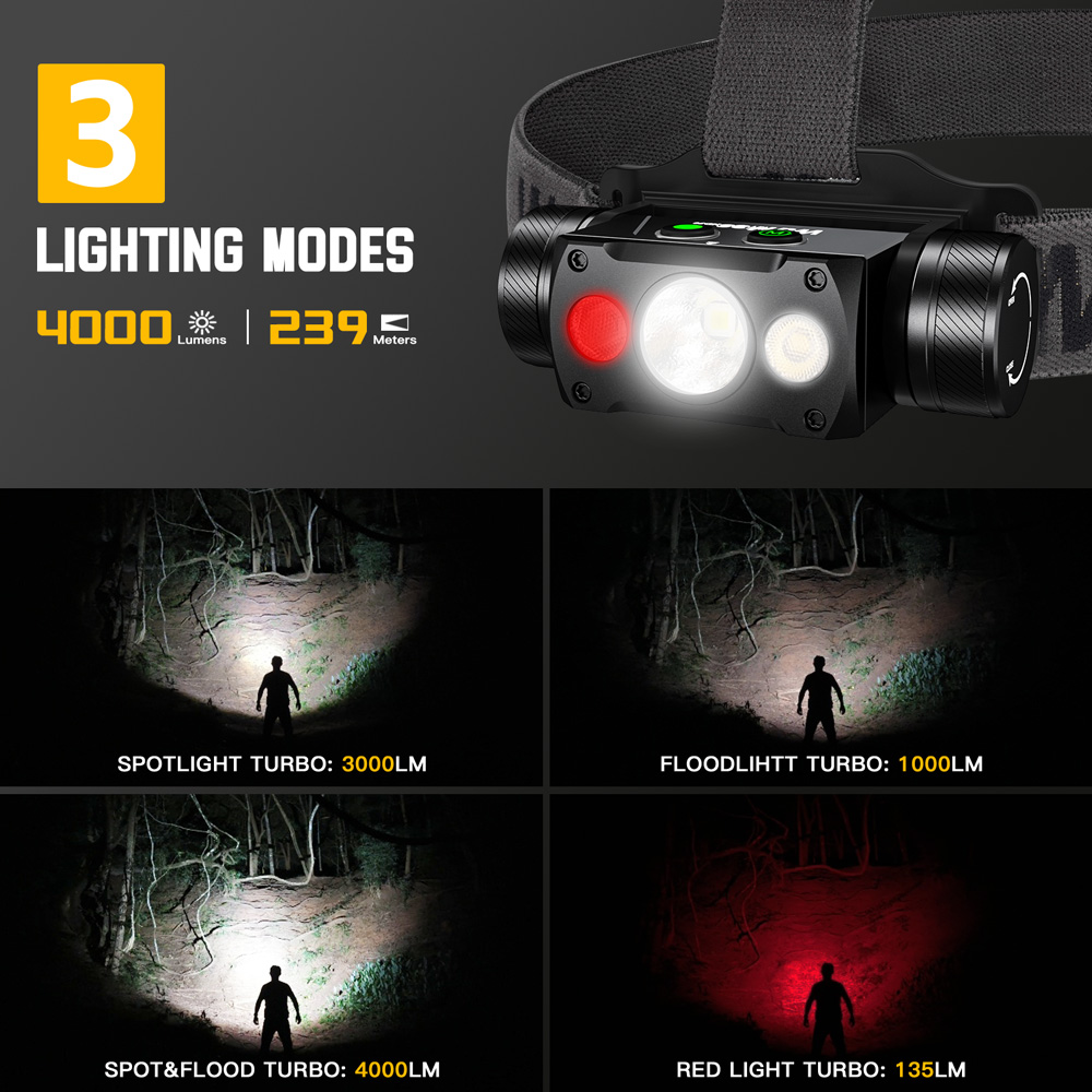Wurkkos HD50 Headlamp 2A Rechargeable 21700 Headlight 4000lm XHP50.3 HI+LH351D+660nm Red Light Toollamp Magnetic Tail Camp Light