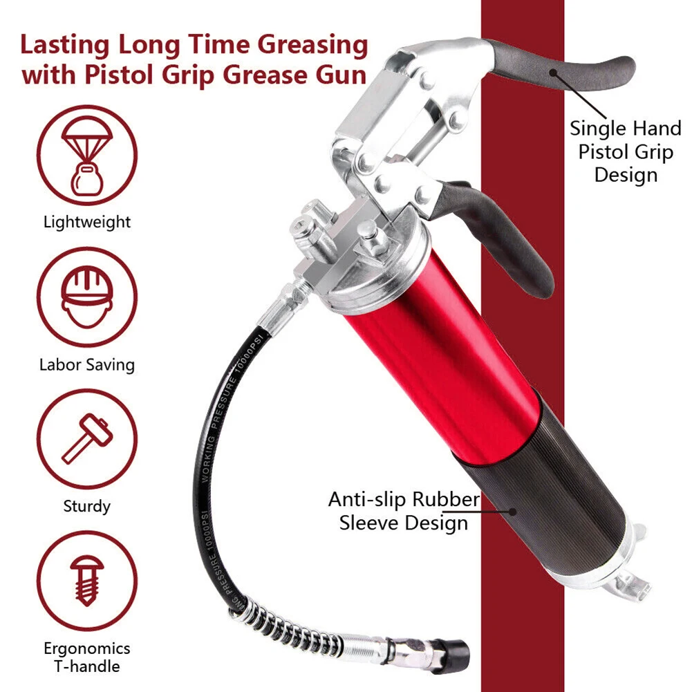 Manual Grip Grease Gun Aluminum Alloy Greasing Injection 400CC Mini Grease Gun 6000-7000PSI with Flexible Hose