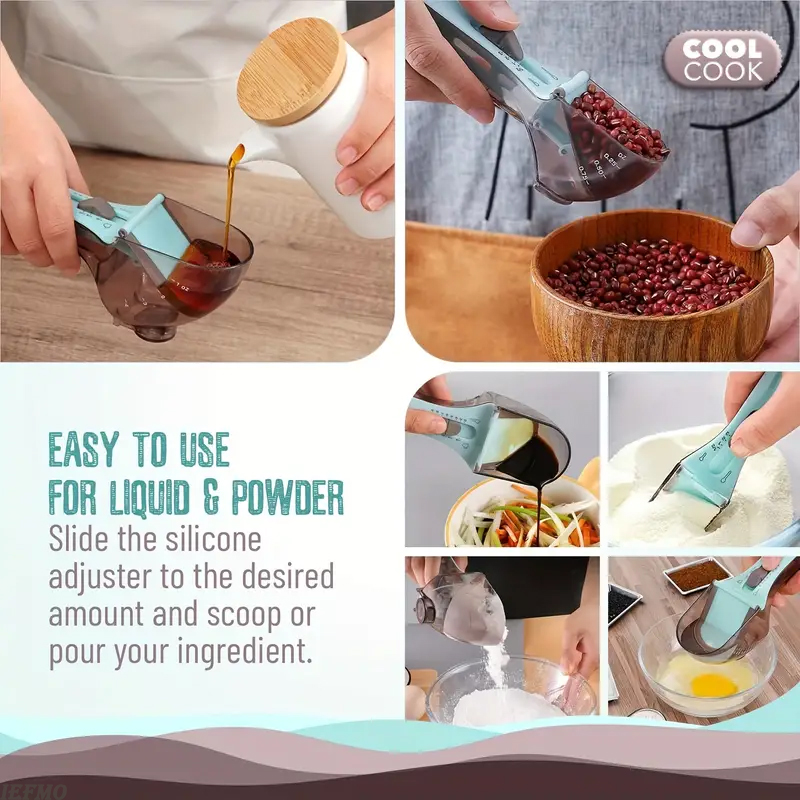 1Pc Adjustable Measuring Cup And Measuring Spoon Plastic Spoon Measuring Cup With Handle For Dry And Liquid Kitchen Tool