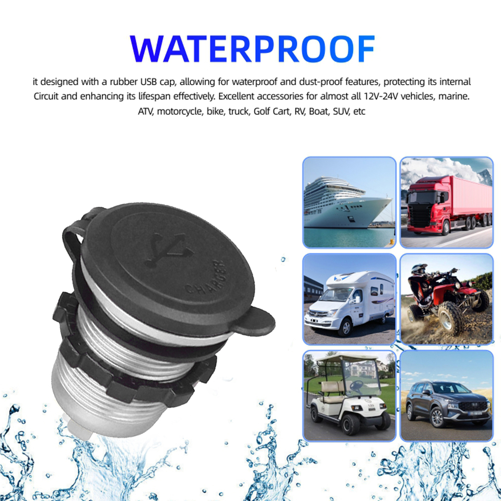 12V/24V USB Car Charger Socket PD3.0 & QC3.0 Type-c Ports Waterproof with LED Touch Switch 115W Fast Charging Car Moto Adapter