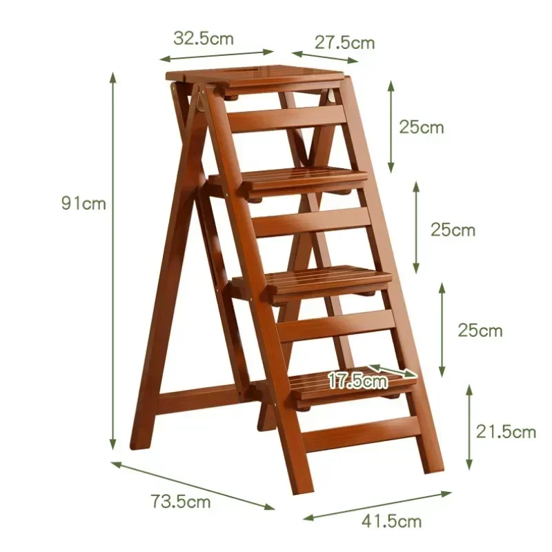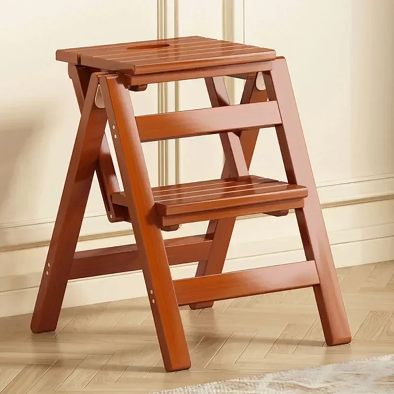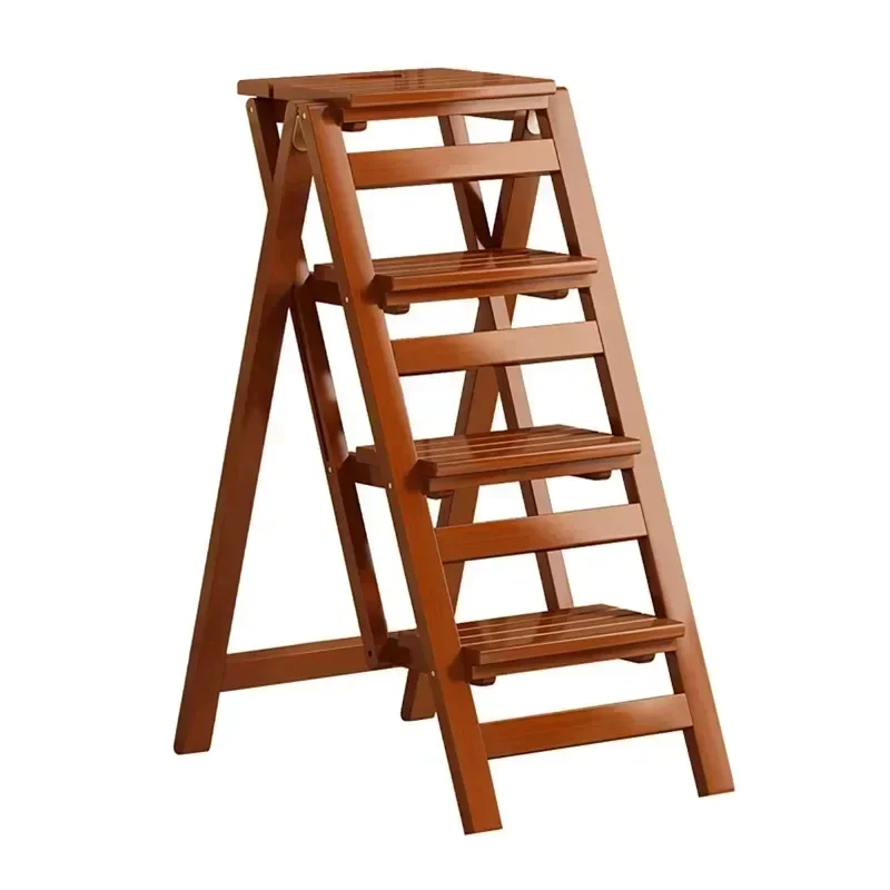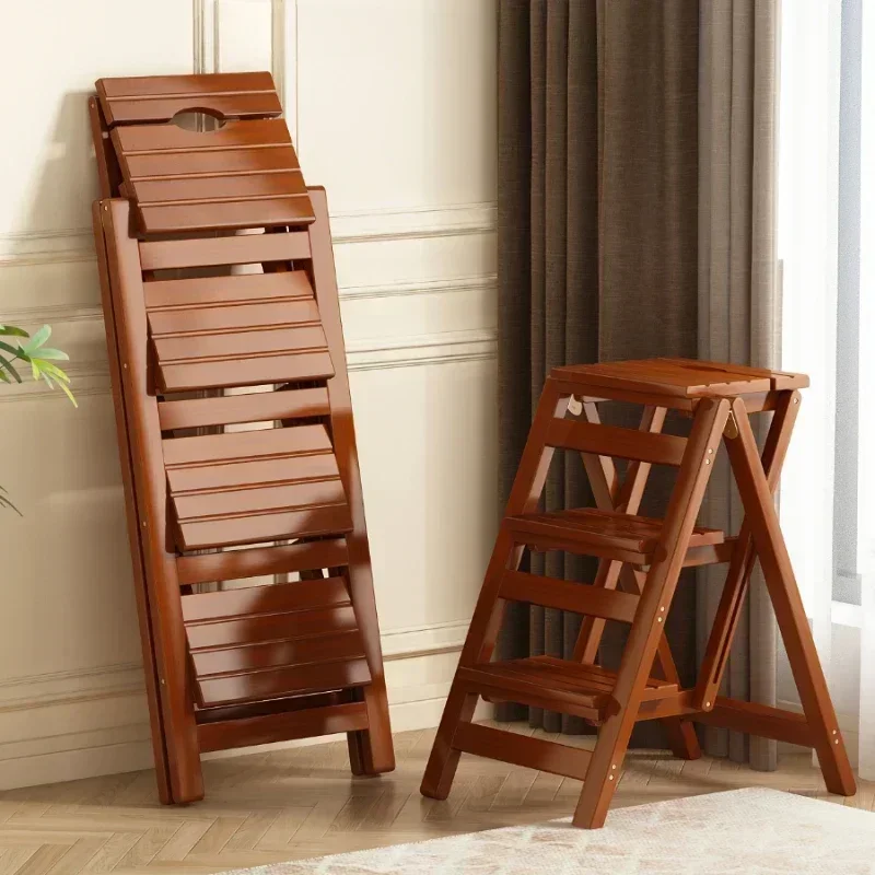 Pine Step Stools Multifunctional Household Folding Climbing Ladder for Home Indoor Outdoor Living Room Household Walnut Color