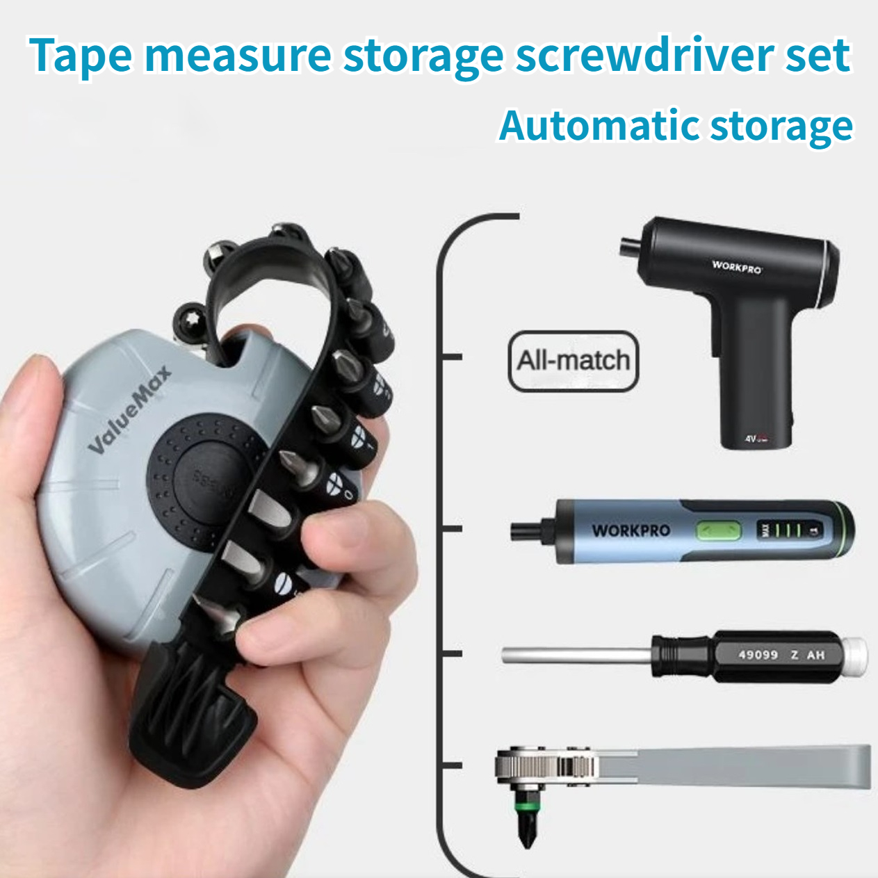 Workpro 21PCS Screwdriver Drill Bit Set Multifunctional Set Tape Measure Storage Ratchet Cross Driver Screwdrivers Tool Bits