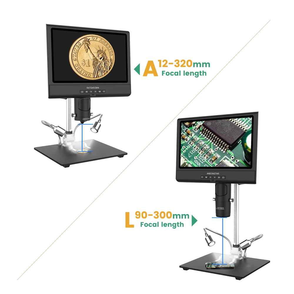 Andonstar AD209 10.1 inch Digital Microscope 1080P Adjustable LCD Display Microscope for Soldering Microscope Phone Watch Repair