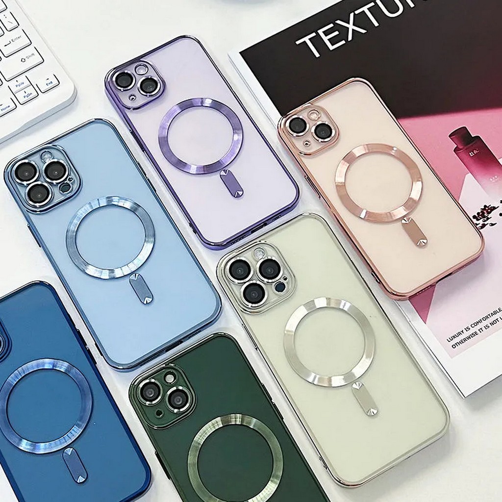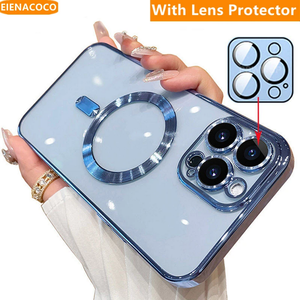 Fashion Plating Magnetic Soft Case For Magsafe For iPhone 15 14 Plus 13 12 11 Pro Max Wireless Charging Case With Lens Protector
