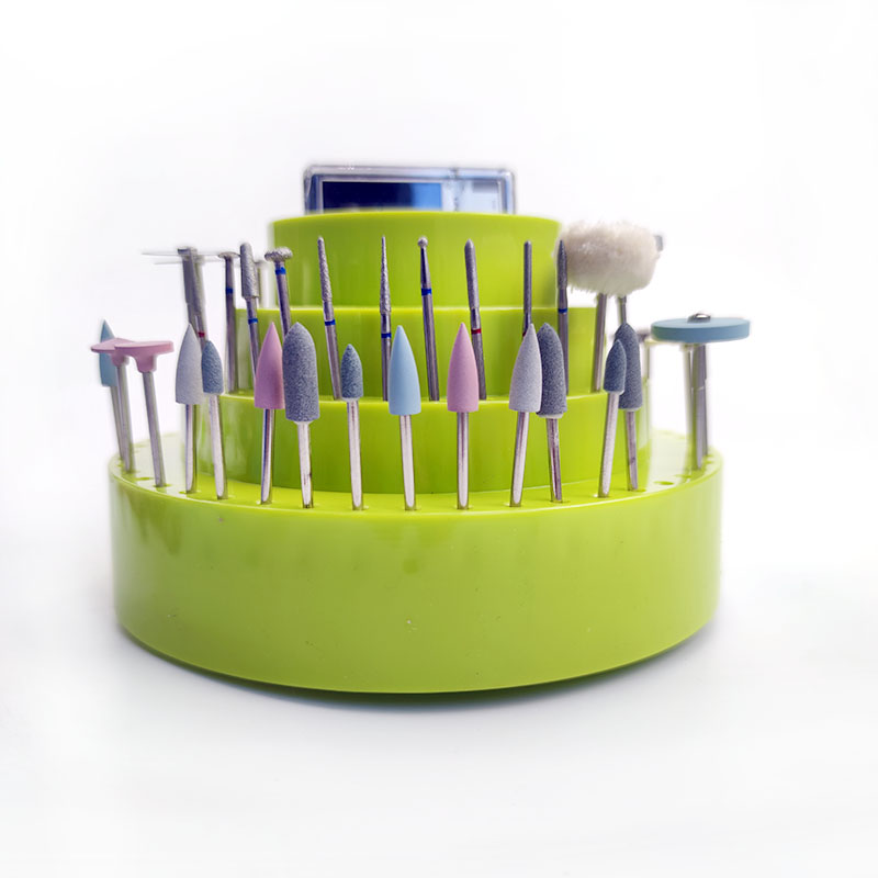 Dental 360° Rotating Box Turntable for Carving Tool Grinding Head Graduated 1-13mm Hickening 100 Holes Stainless Steel Base