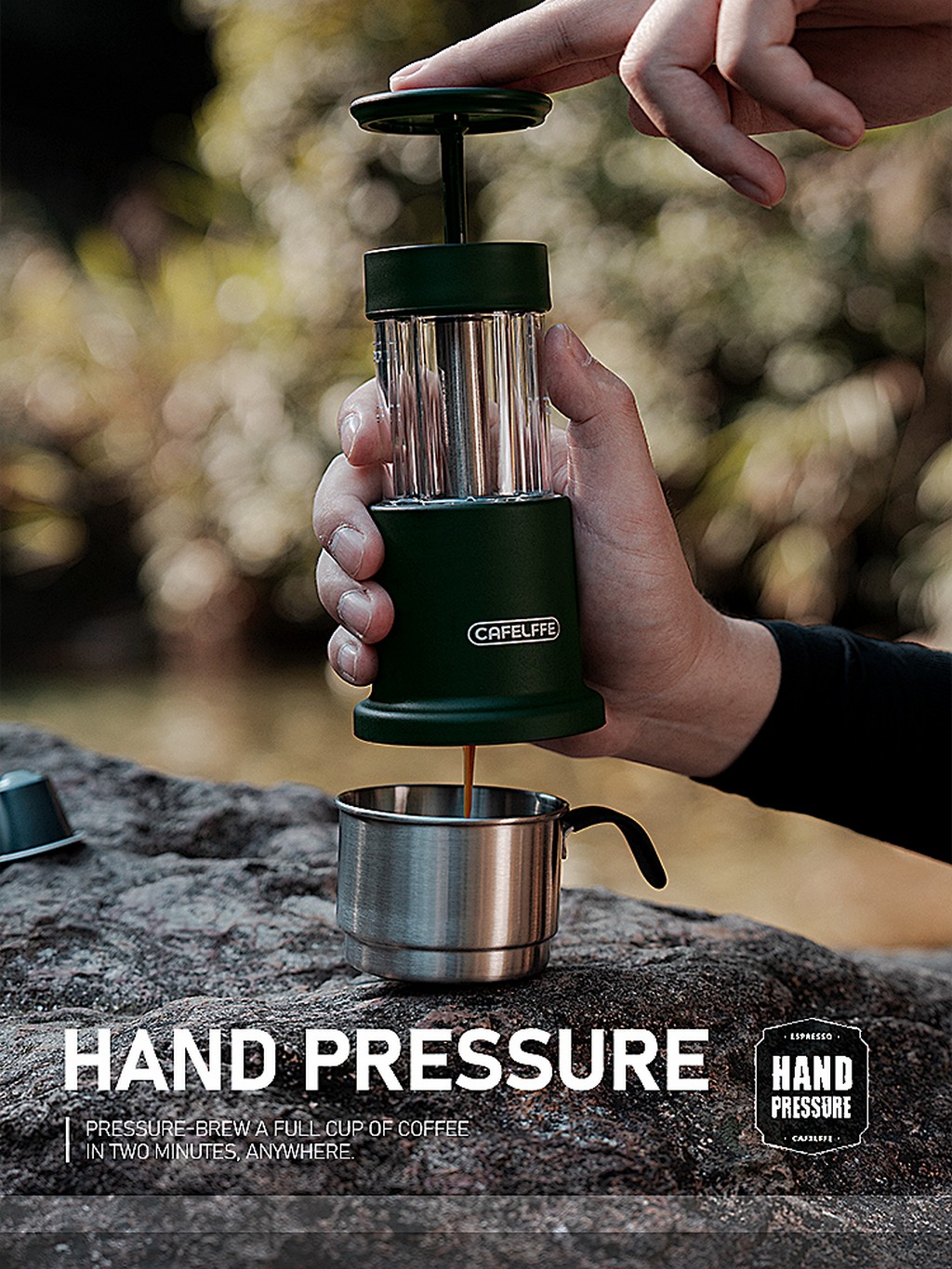CAFELFFE Espresso Maker for Outdoor Compatible Ground Coffee NS Capsules* Portable Manually Operated For Gift Travel Camping