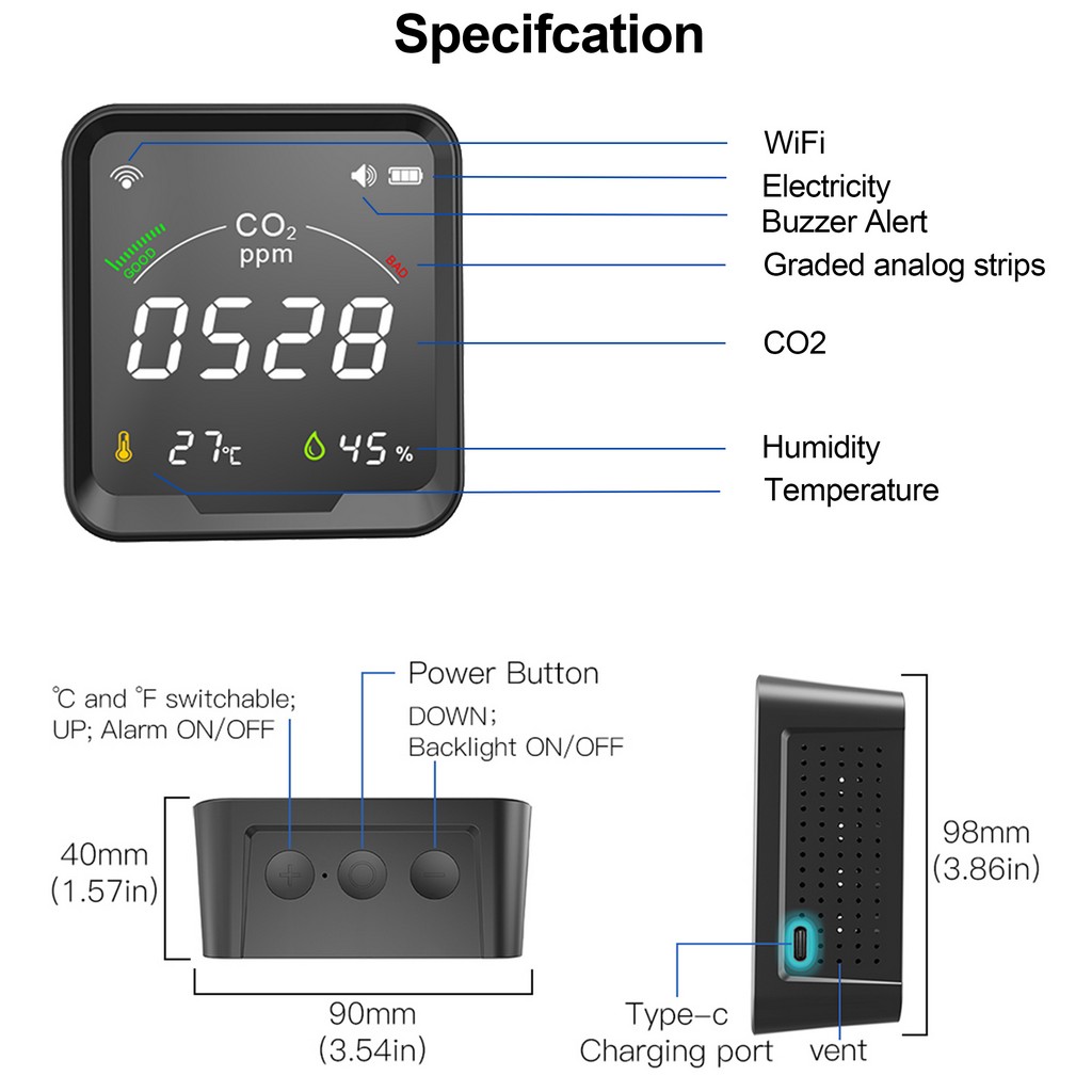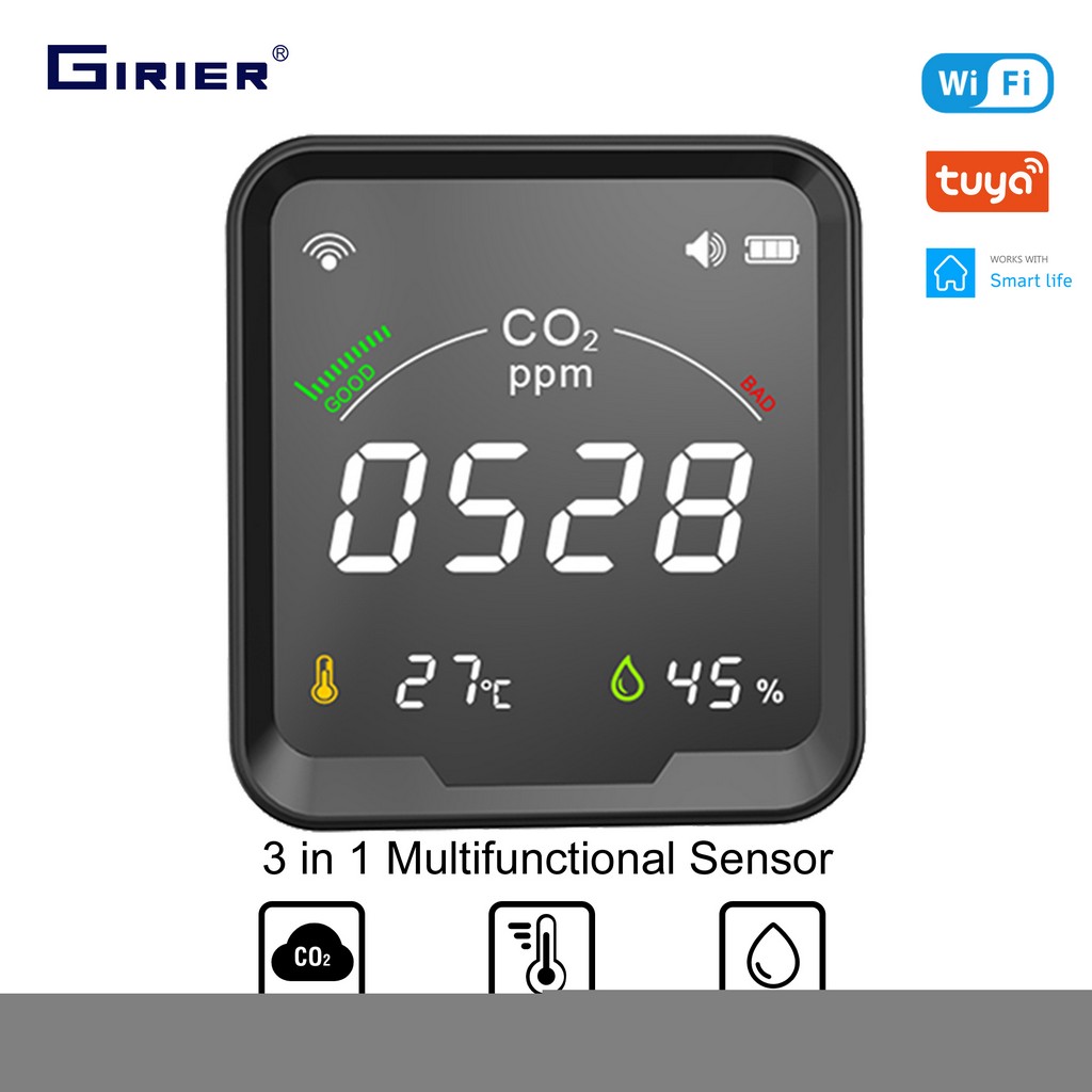GIRIER Tuya Smart WiFi CO2 Detector Indoor Carbon Dioxide Monitor Built-in Temperature and Humidity Sensor work Smart life APP