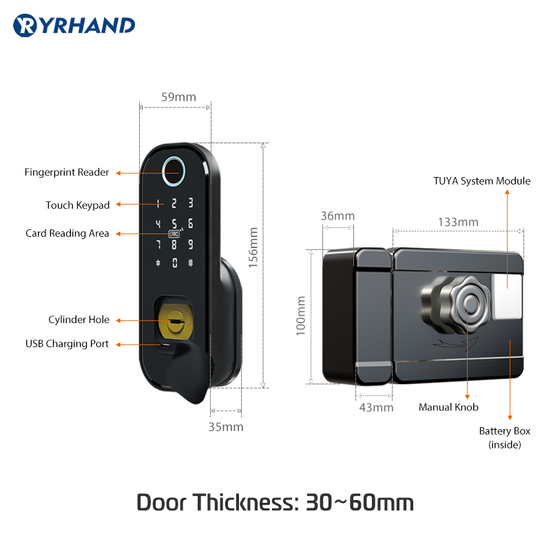 Tuya Smart lock Waterproof Wifi Fingerprint Rim Lock Smart Card Digital Code Electronic Door Lock For Home Security Mortise