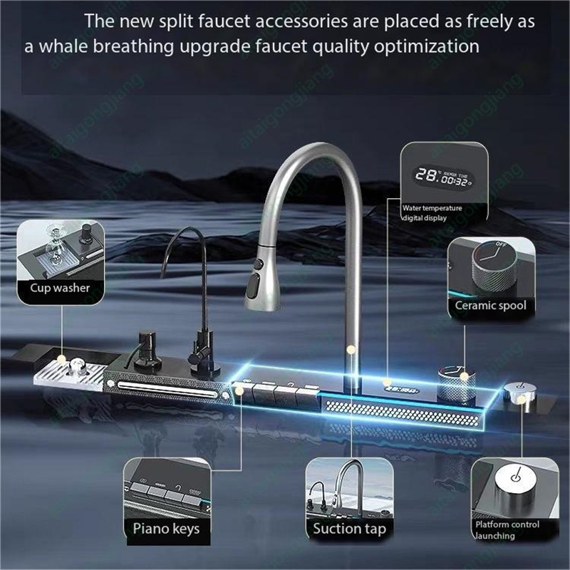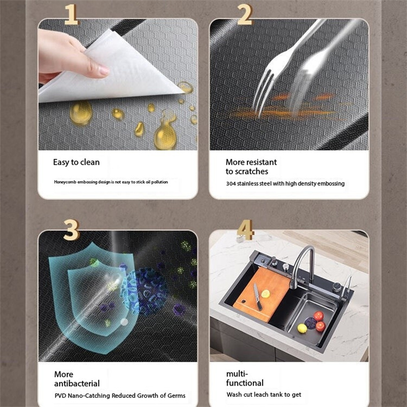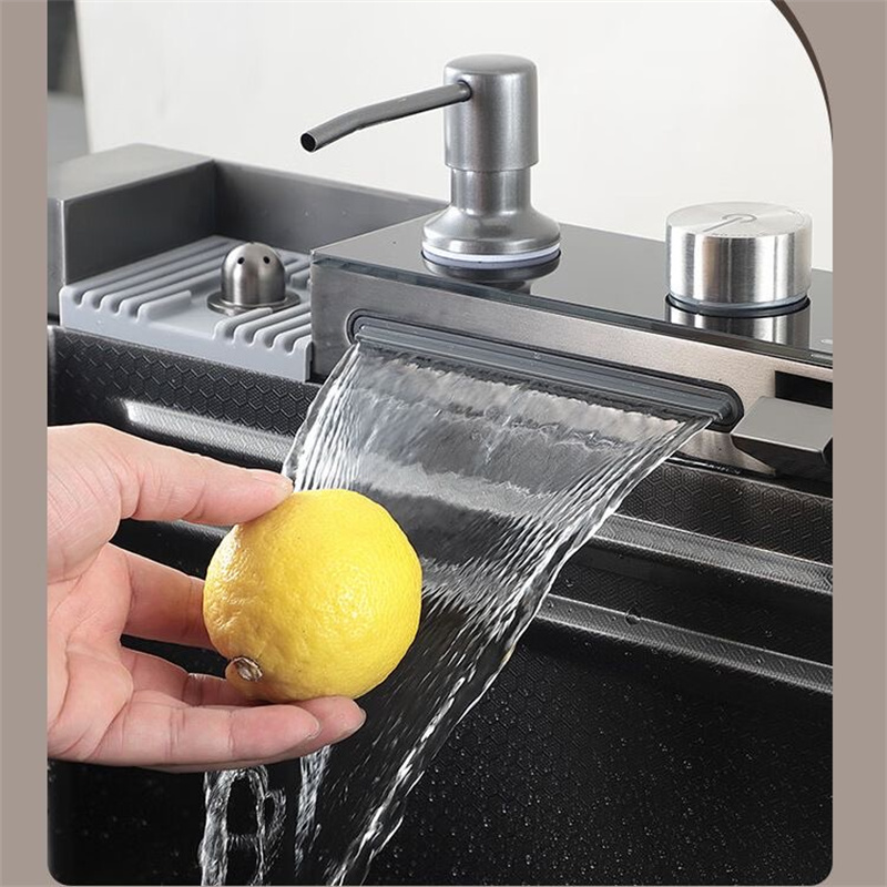 Waterfall Sink Kitchen Stainless Steel Topmount Sink Black Nano Wash Basin Single Sink creative Stainless Steel Kitchen Sinks
