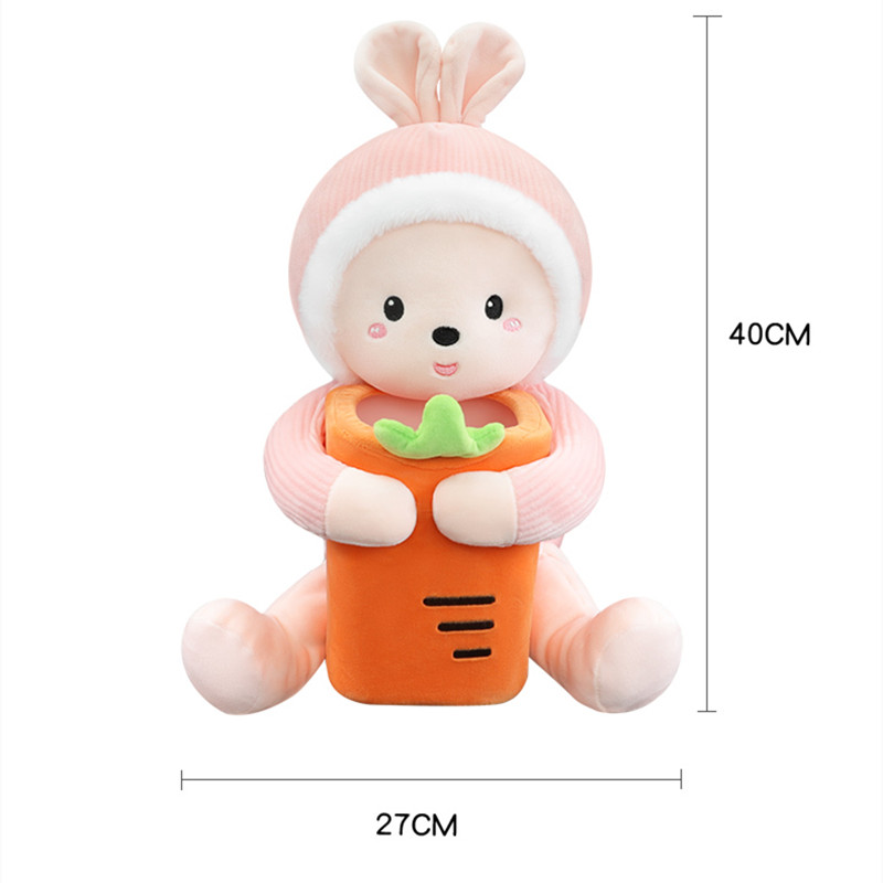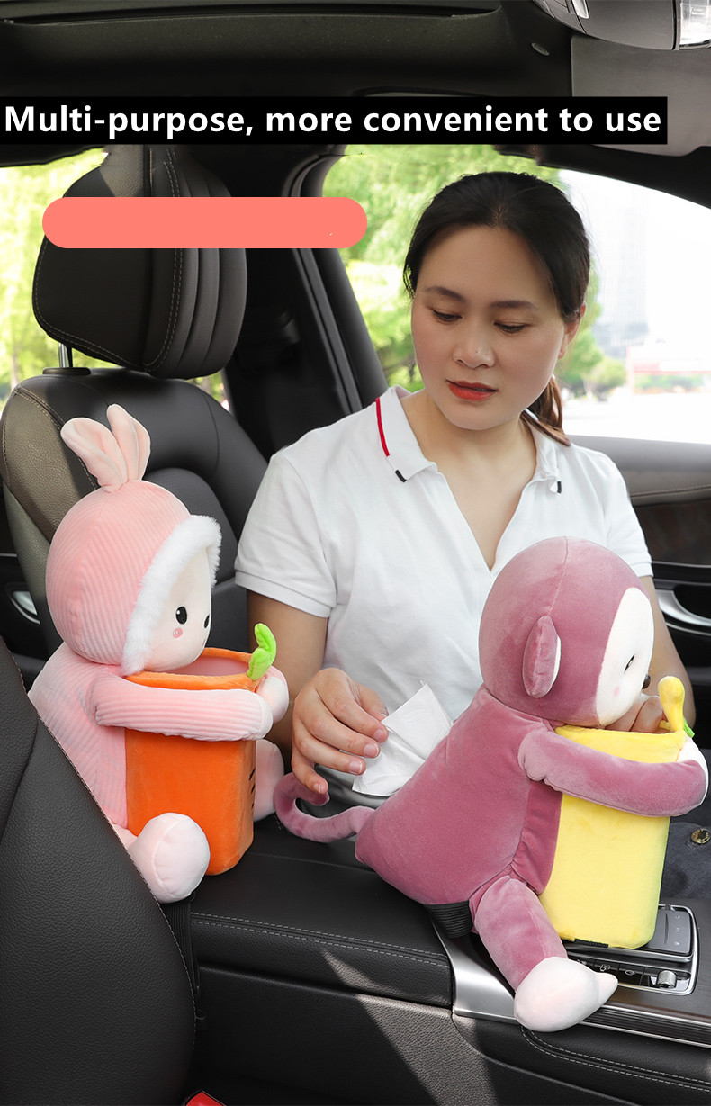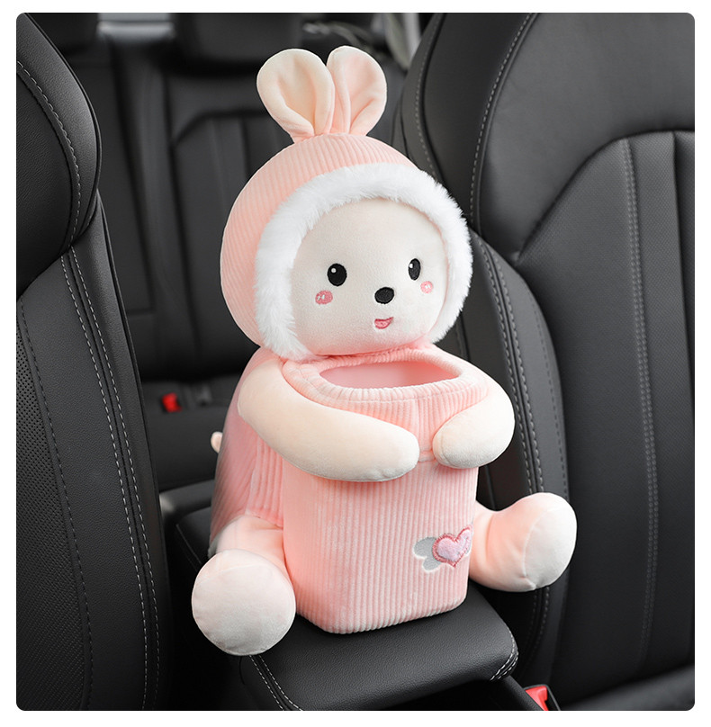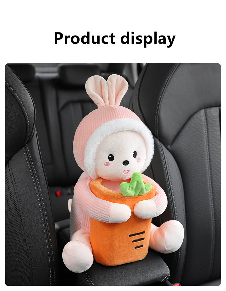 2 in 1 Cute Cartoon Car Tissue Box Creative Lovely Rabbit Short Plush Tissue Box Holder for Car Armrest Box Car Seat Tissue Box
