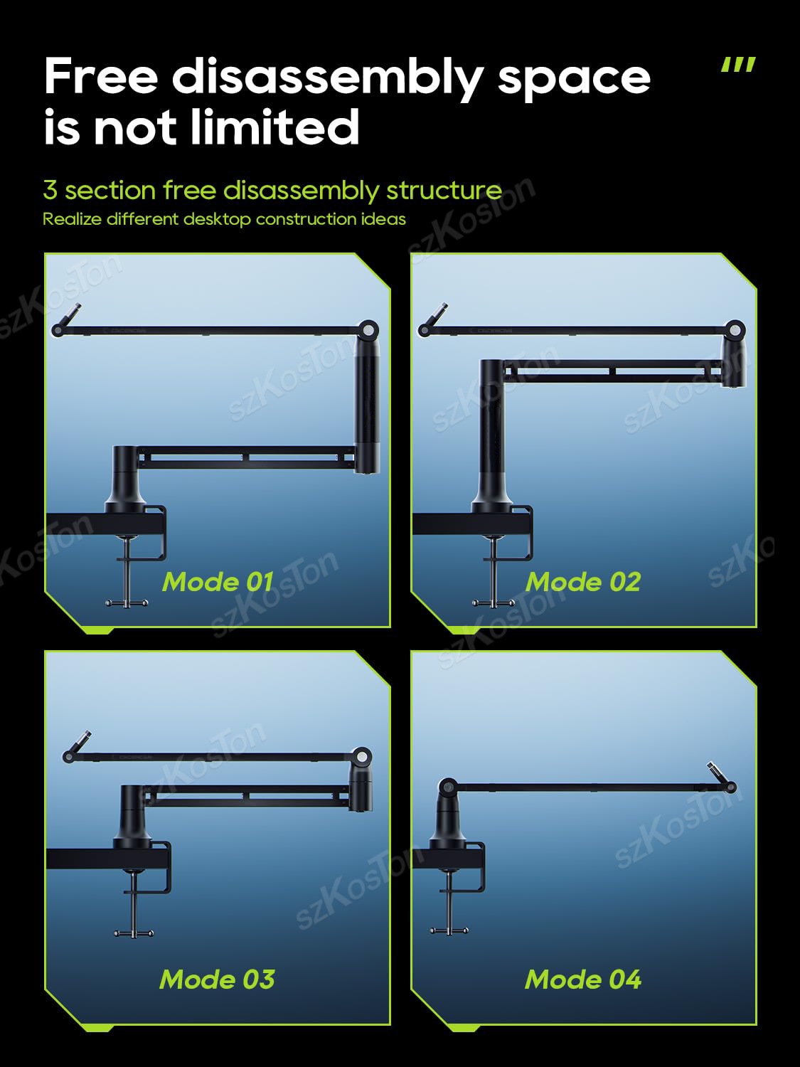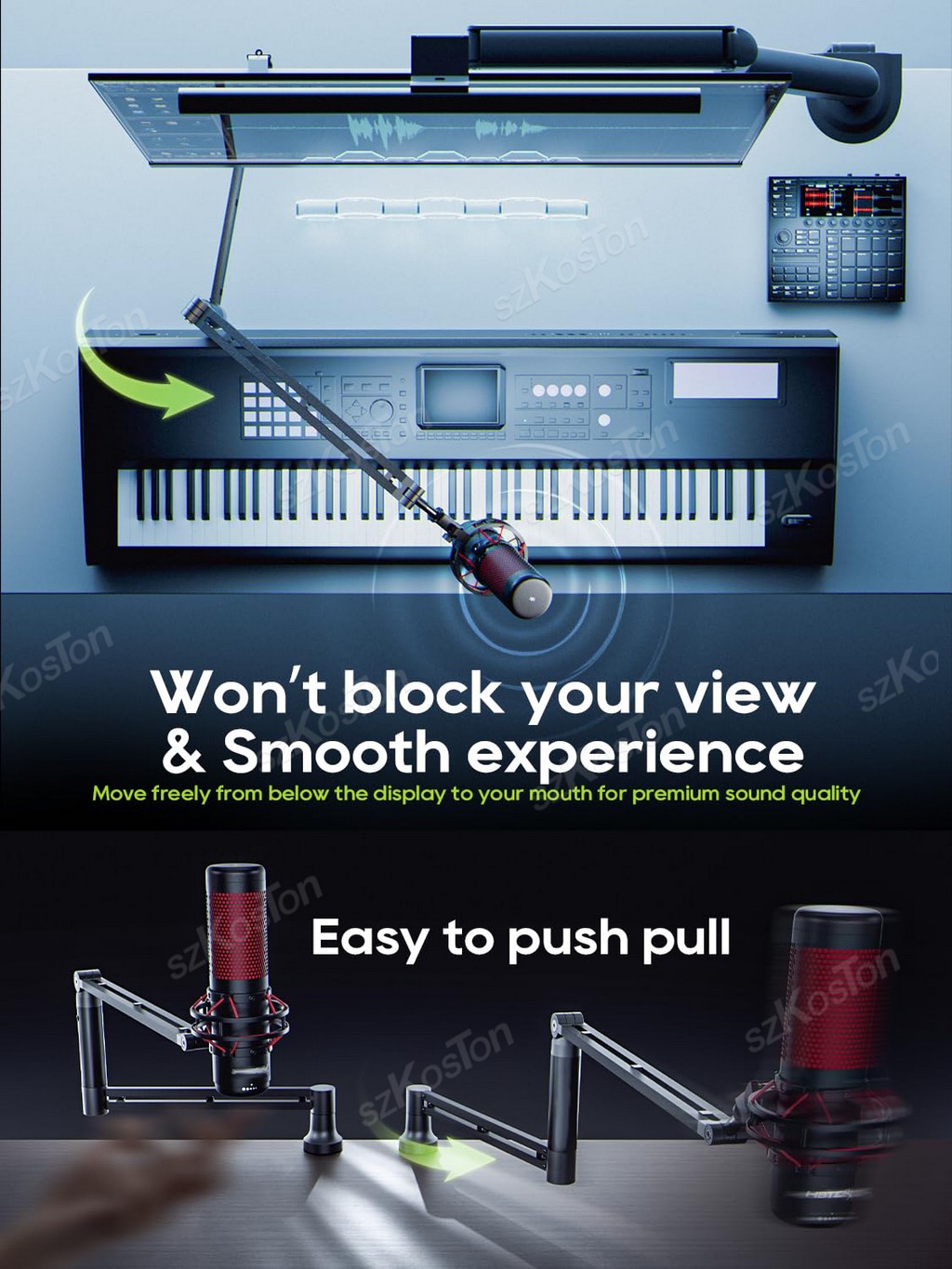 Adjustable Microphone Boom Arm Extended Riser with Cable Management Low Profile Mic Arm Gaming Microphone Stand for AM8 K688 A8