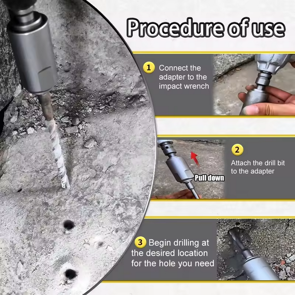 Adapter for Converting Impact Wrench To Electric Hammer Converts To SDS-Plus/Square Interface for Use with Drill/Impact Wrench