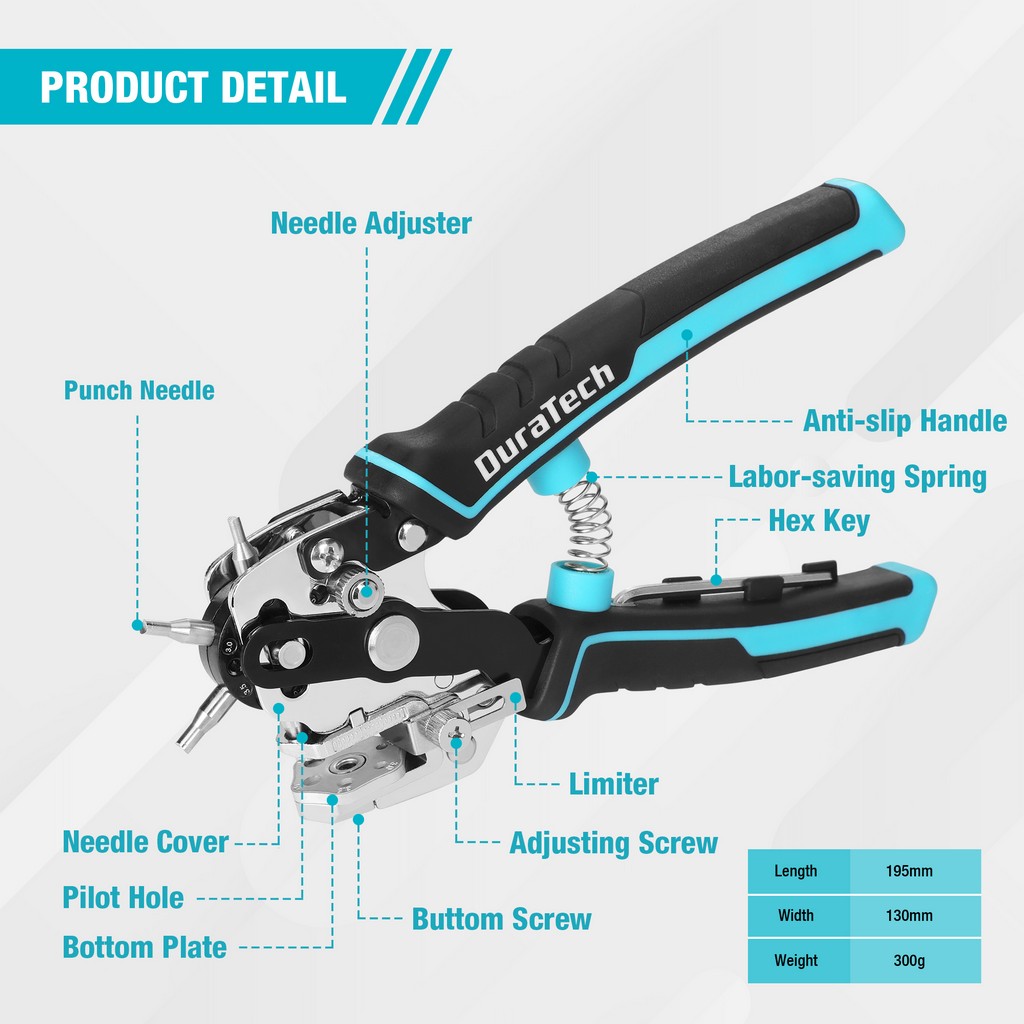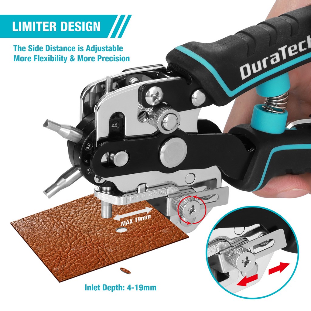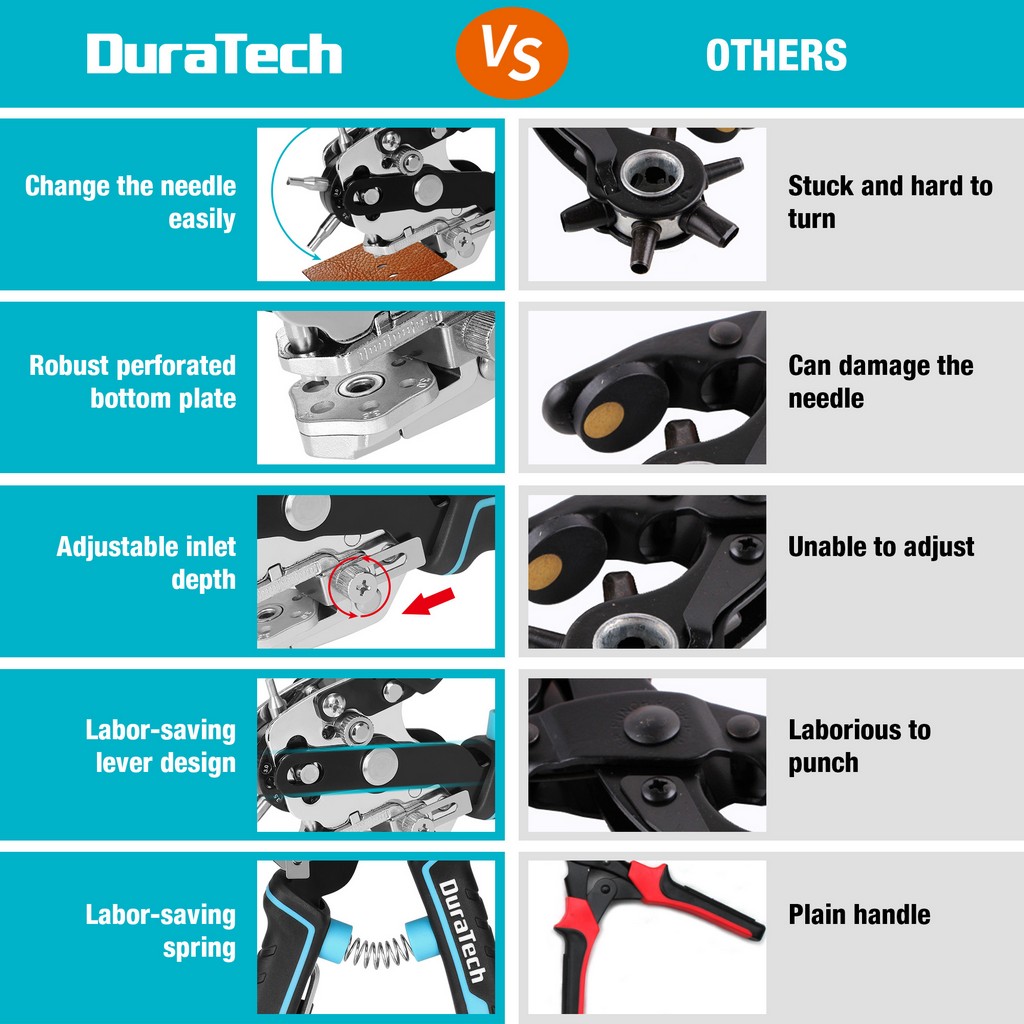 DURATECH Leather Hole Punch, Heavy Duty Belt Hole Punch Plier with 6 Solid Holes for Belts, Watch Bands, Straps, DIY Home