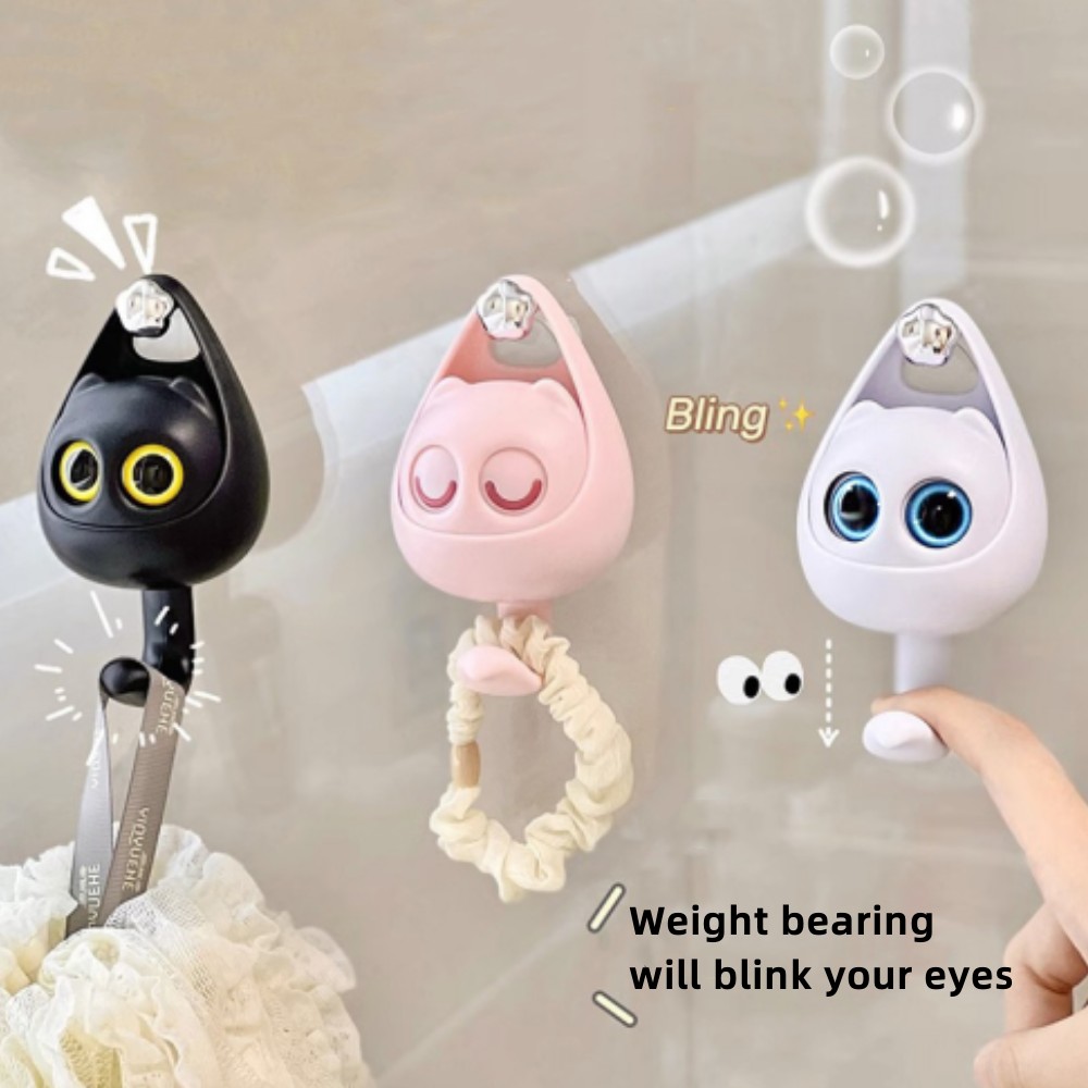 Creative Cute Cartoon Big Eyes Cat Self-adhesive Hooks for Clothes Hat Scarf Key Holders Rack Home Decoration Wall Shlef Hanger