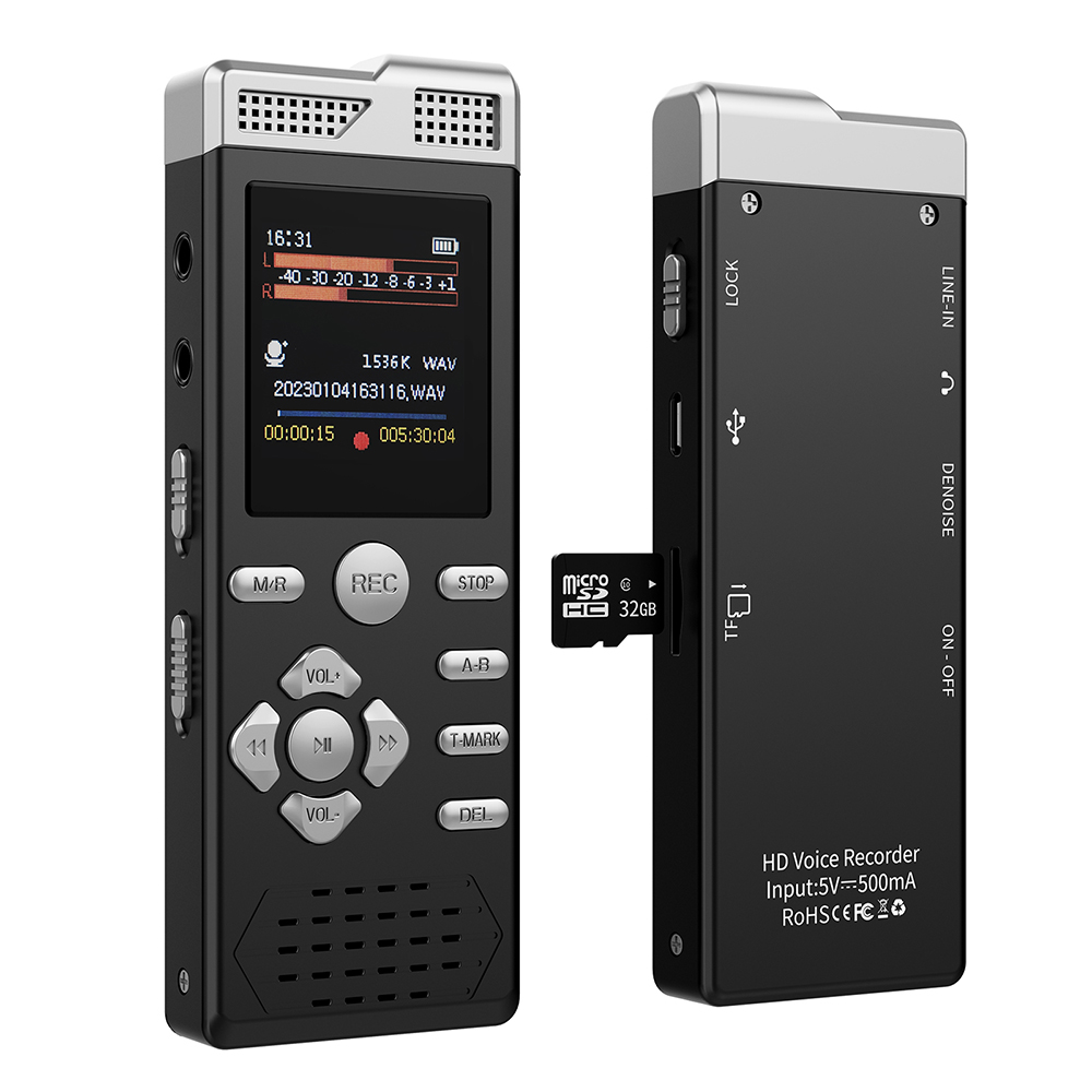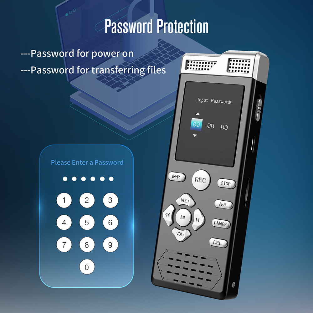 Voice Activated Dual Microphone Recording Password Protection Line-in T-MARK Digital Voice Recorder MP3 Music Player Dictaphone