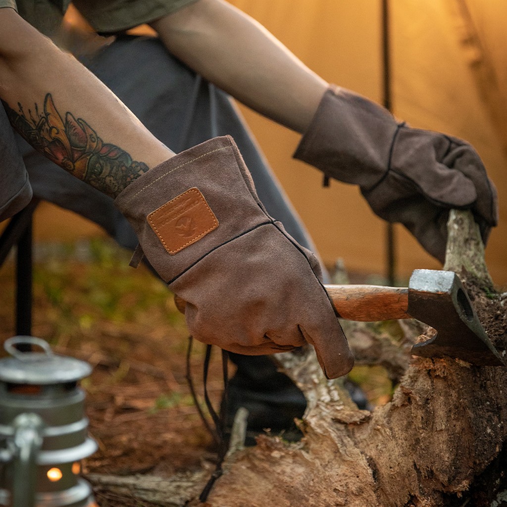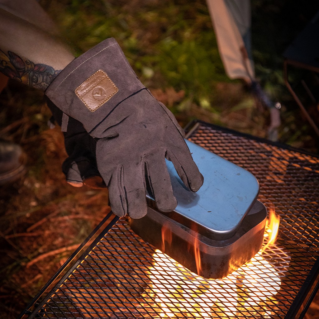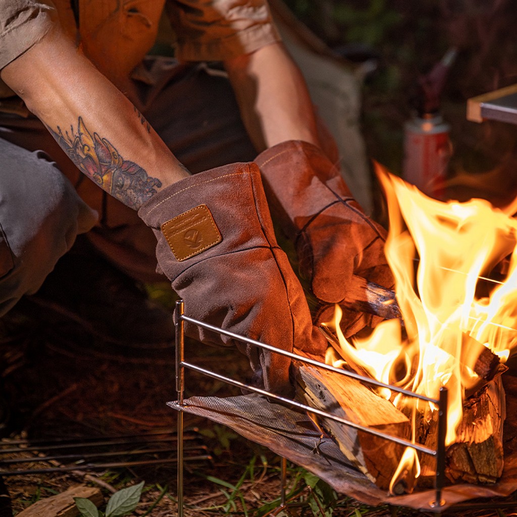 Campingmoon Flame Retardant Heat Insulation Leather High Temperature Outdoor Camping Picnic BBQ Gloves