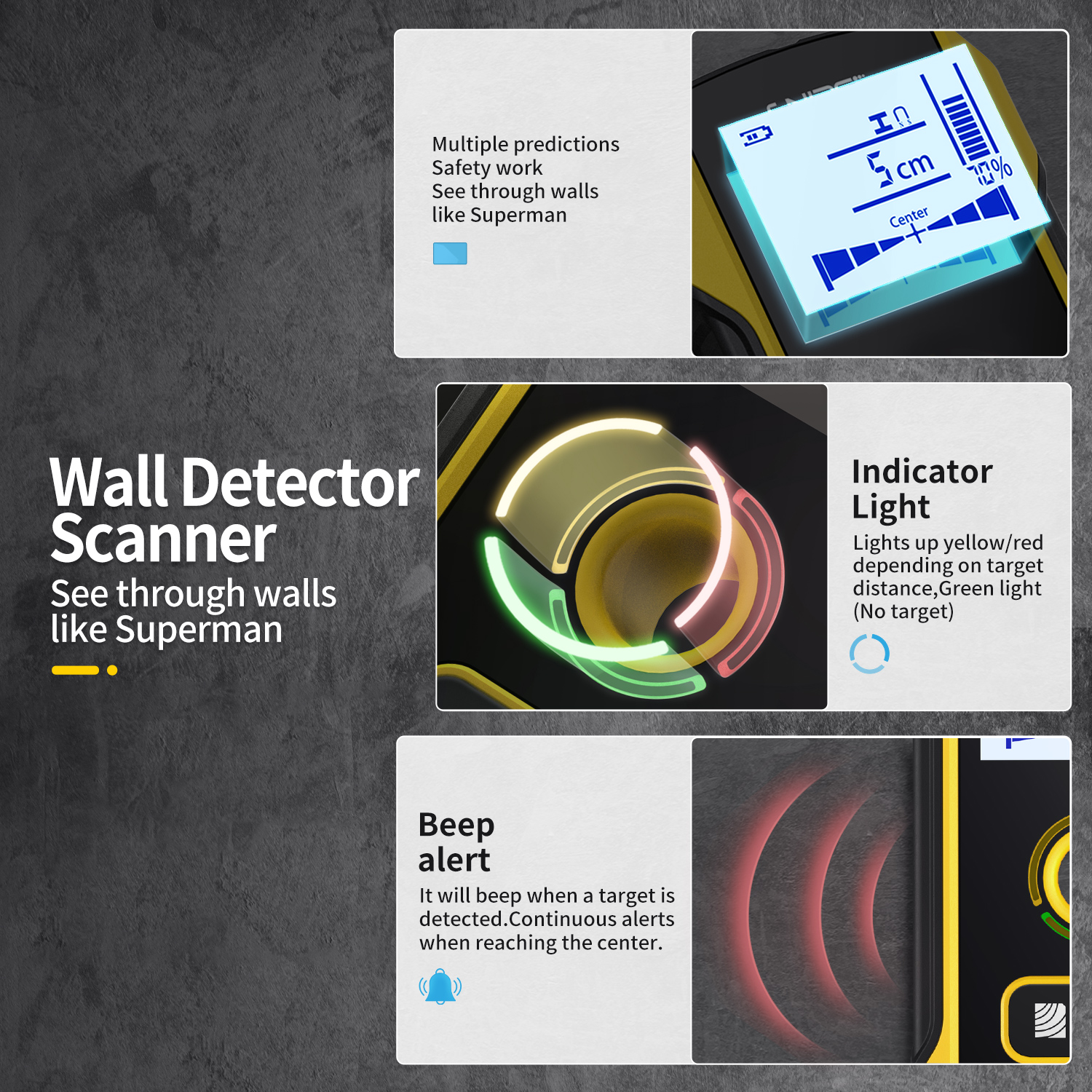 Device for detecting: wood, metal, electrical wires in walls