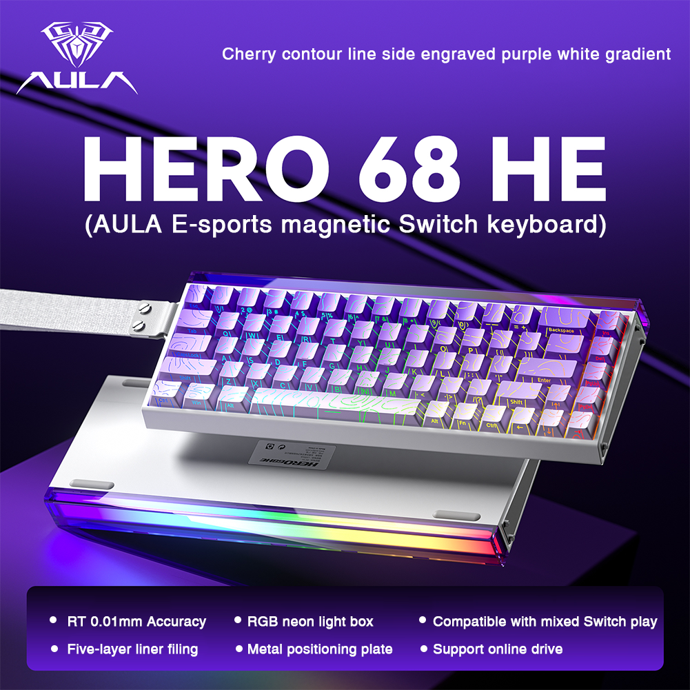 AULA HERO 68HE Magnetic Switch Keyboard Rapid Trigger 8K Return Esports Gamer Keyboard RGB Wired Gaming Keyboard