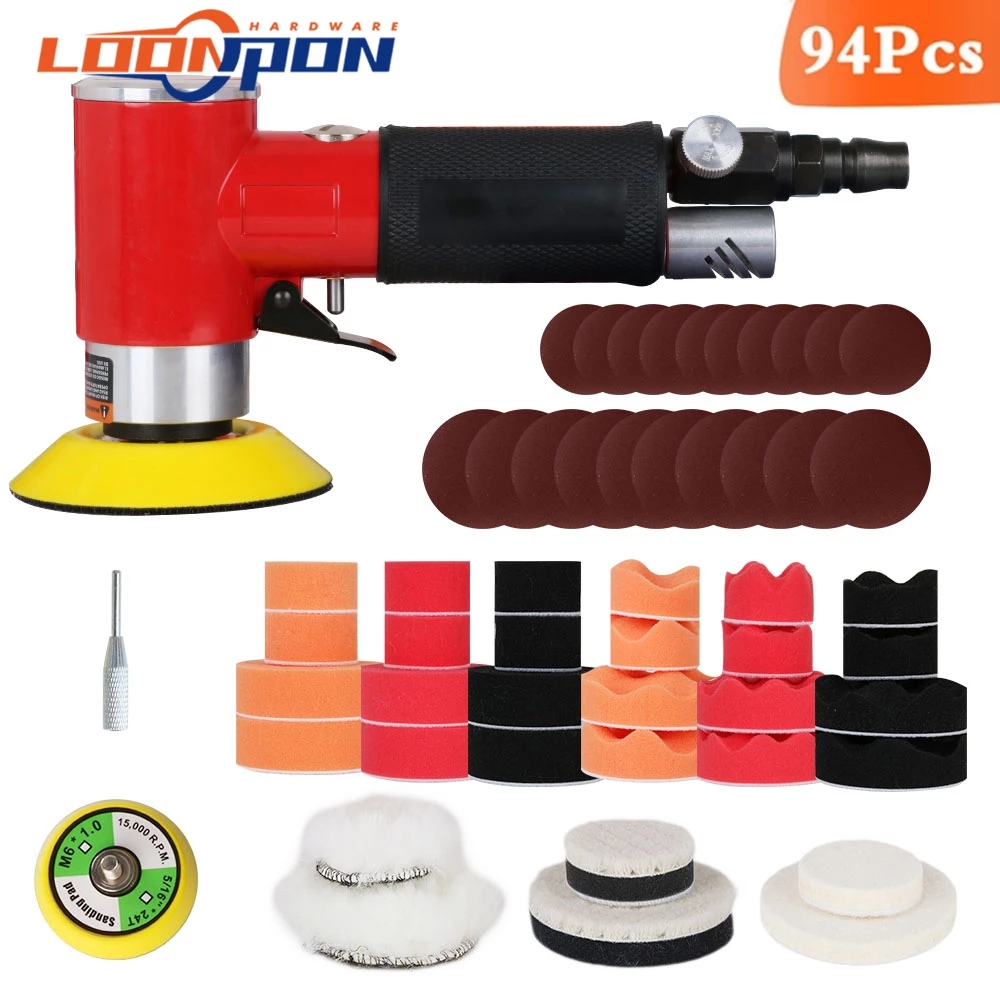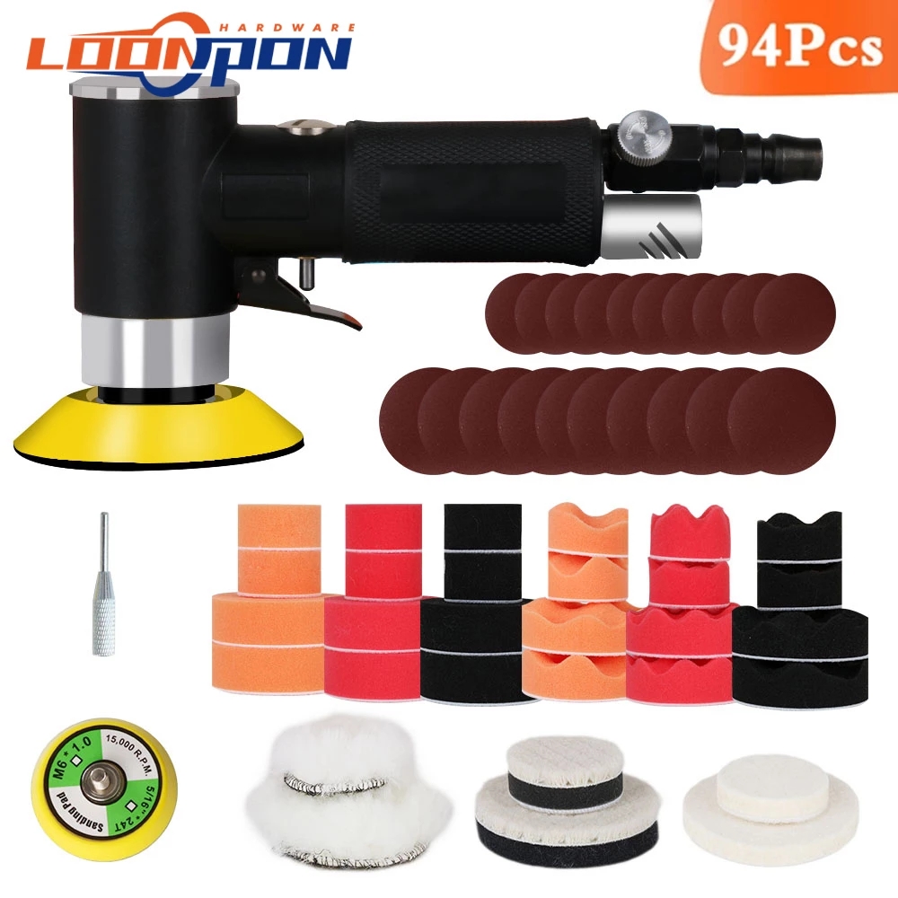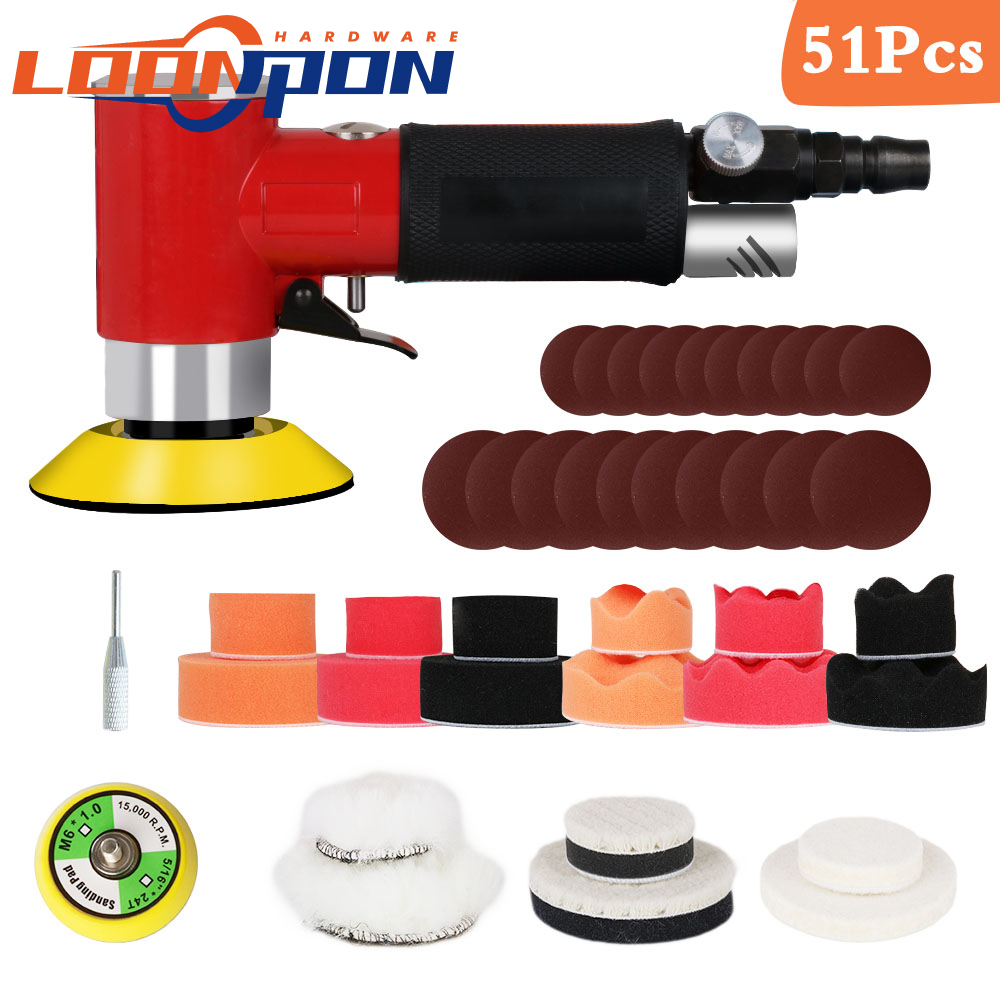 New Air Sander Mini Pneumatic 2"/3" Grinding Machine Set for Car Polishing High Speed Buffer Dual Action Orbital Polisher Sponge