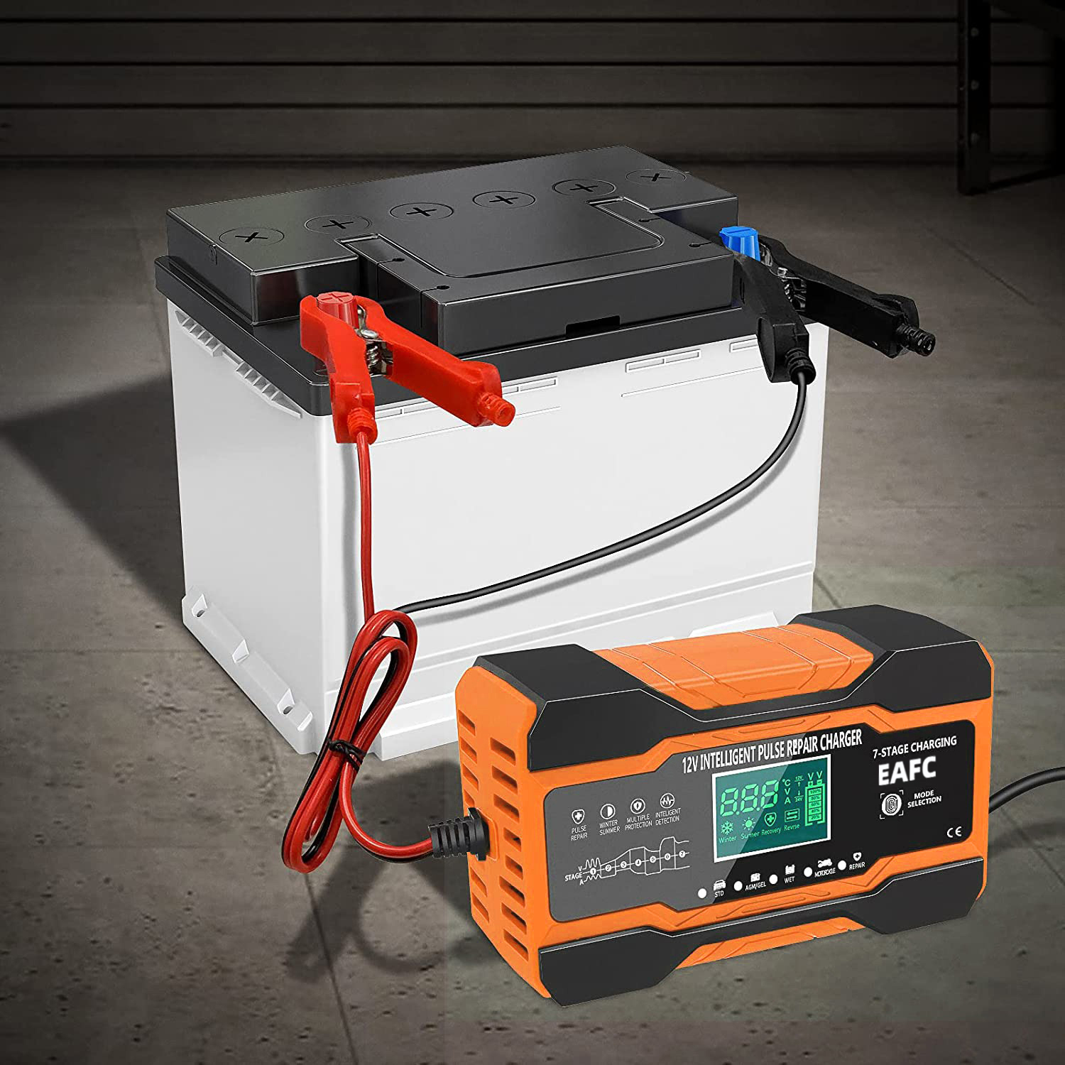12V 24V 12A 10A Battery Charger Smart Fast Charging for Car Batteries 7-Stage Charge Pulse Repair for AGM GEL WET Lead Acid